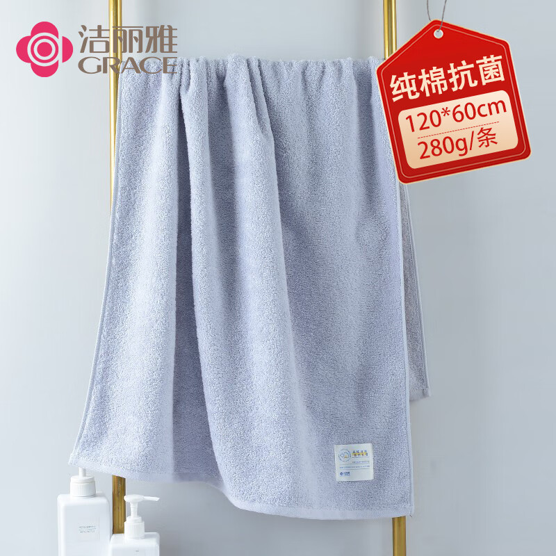洁丽雅(Grace) 新疆棉抗菌浴巾 W1208 120*60cm*280g 灰色(单位:条)