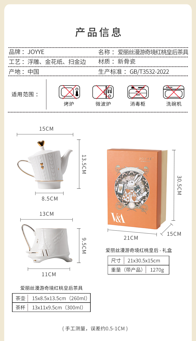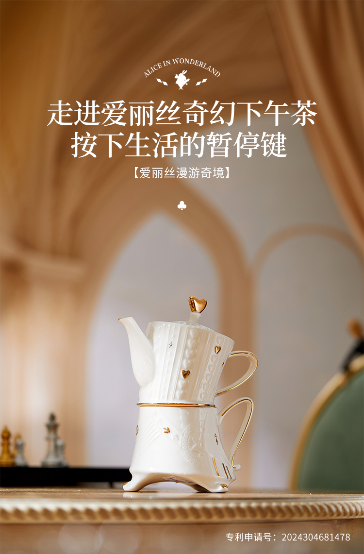 JOYYE 套2爱丽丝漫游奇境红桃皇后茶具 2件套 一壶一杯茶具套装 白色(单位:套)
