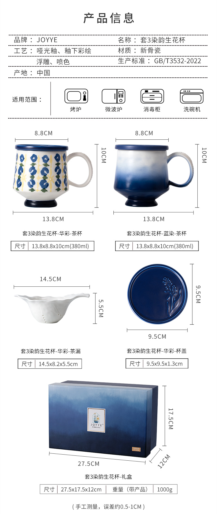 JOYYE 套3染韵生花杯 380ml 非遗马克杯 华彩(单位:套)