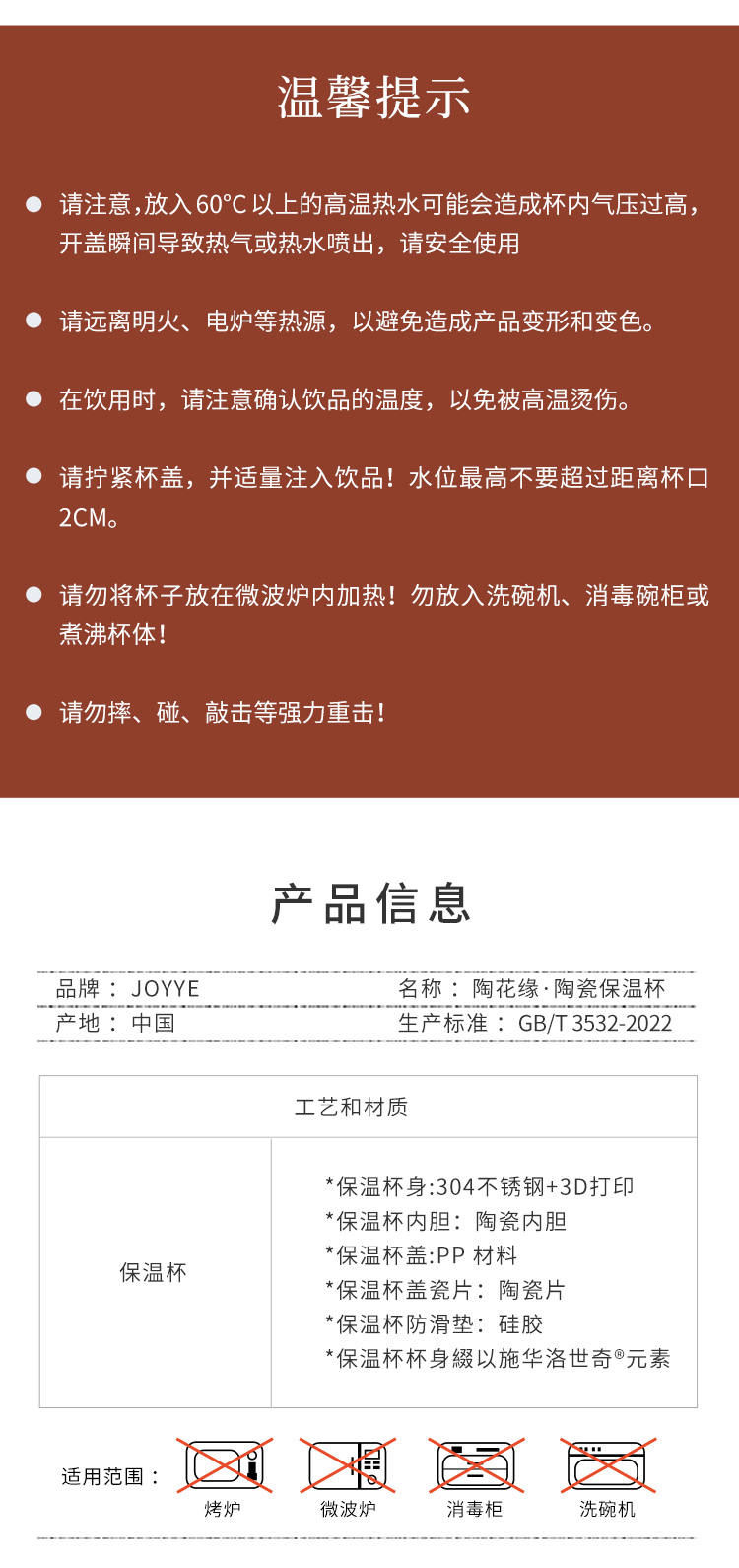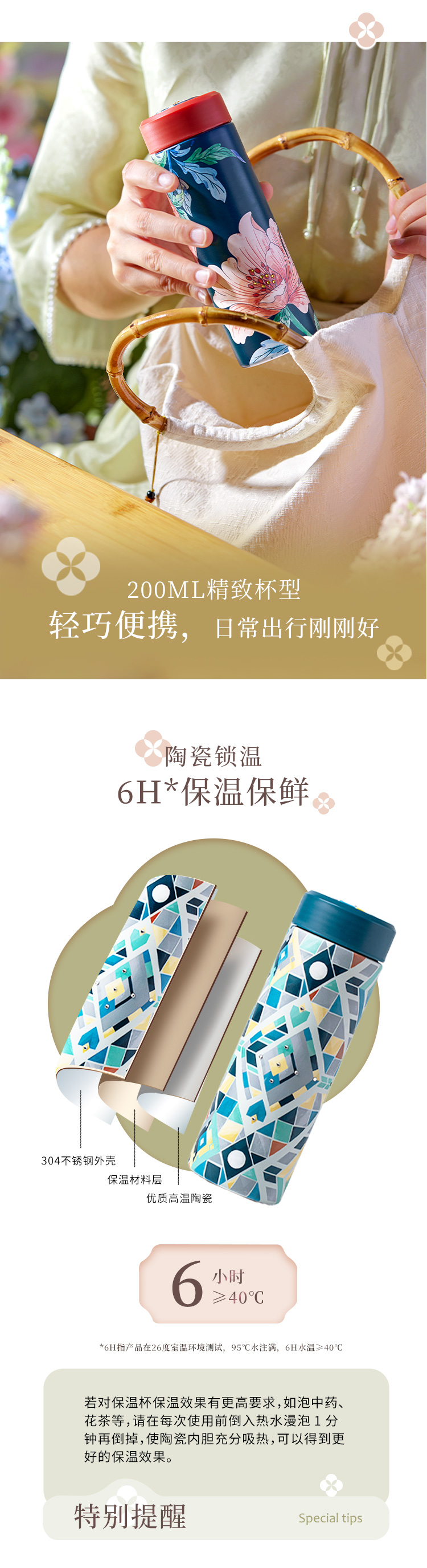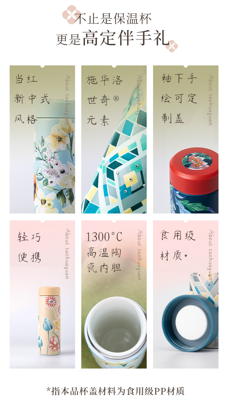 JOYYE 陶花缘保温杯 200ml 高温陶瓷内胆 自由之光(单位:个)