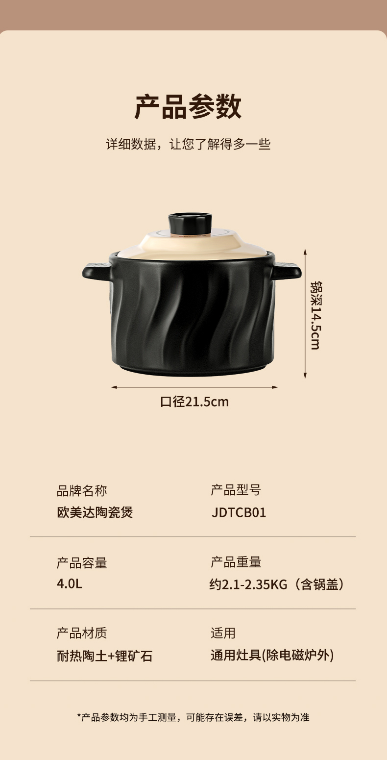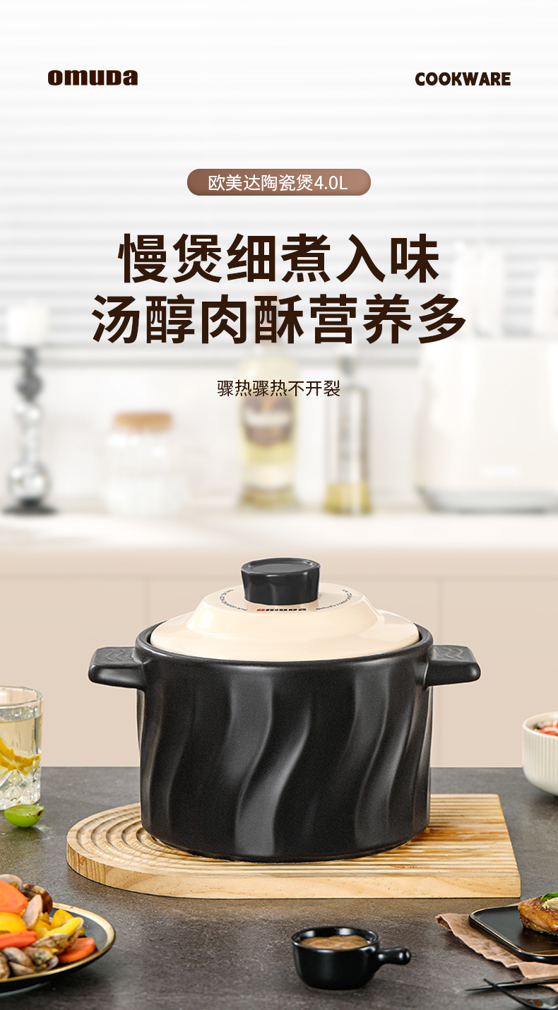 欧美达(omuDa) JDTCB01 4L 高温烧制陶瓷煲 曜石黑(单位:个)