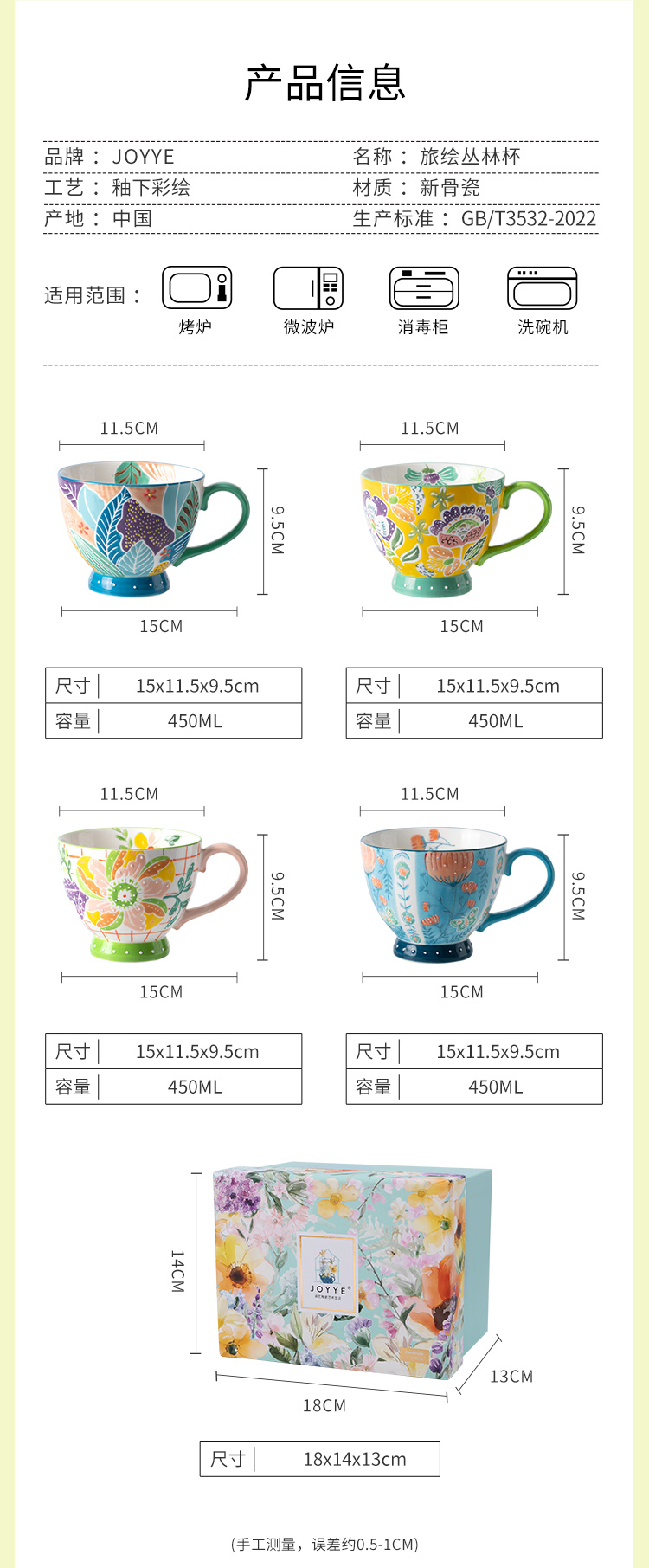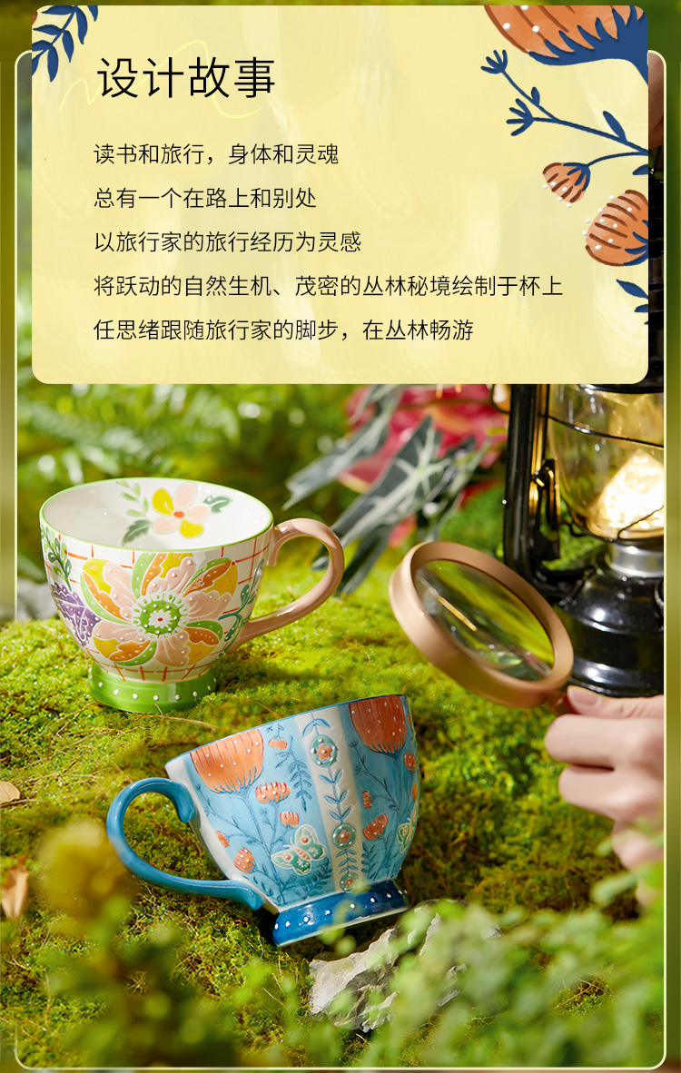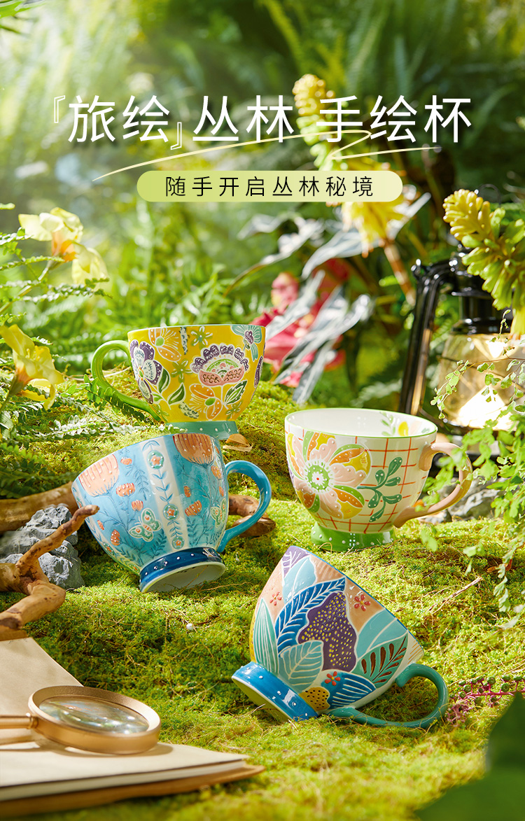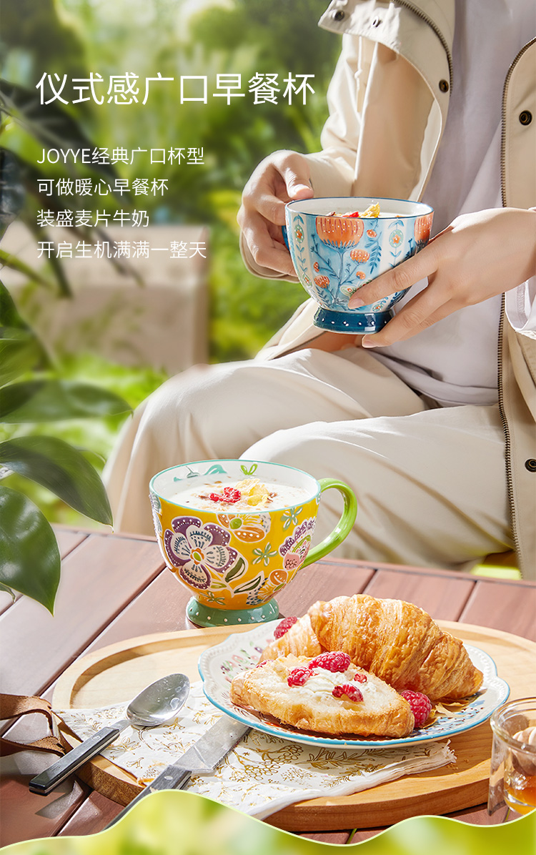 JOYYE 旅绘丛林杯 450ML 釉下彩麦片杯 蓝色(单位:个)
