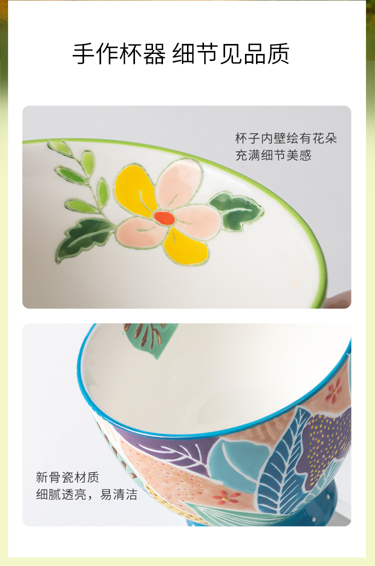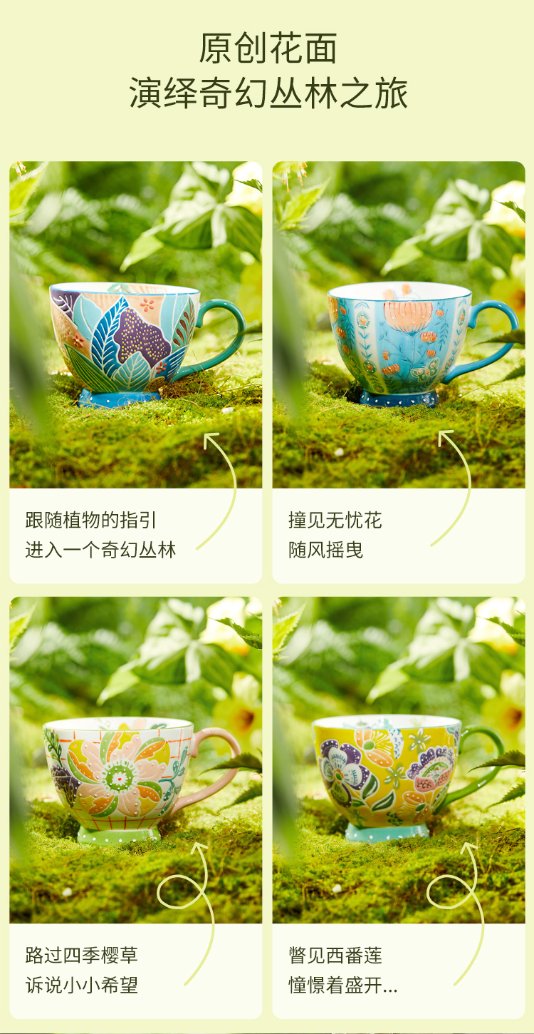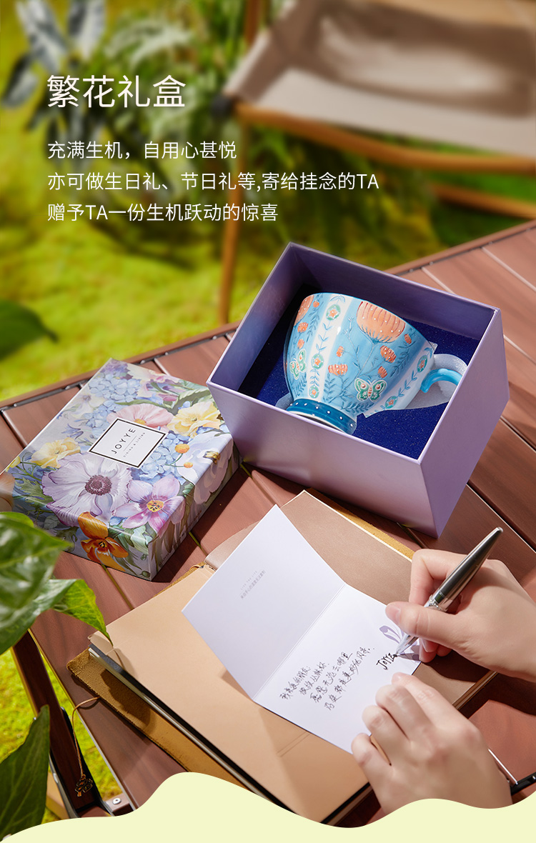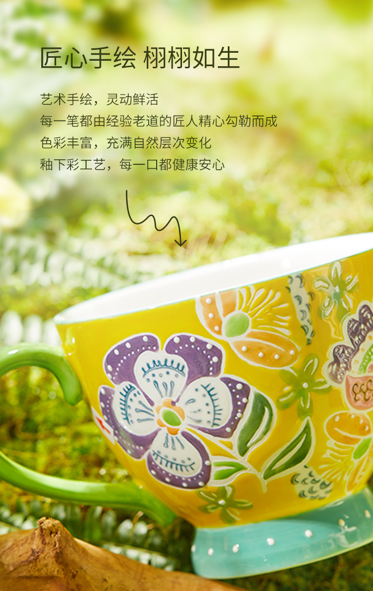 JOYYE 旅绘丛林杯 450ML 釉下彩麦片杯 蓝色(单位:个)