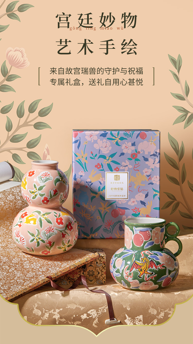 JOYYE 瑞兽纳福花瓶-玉兔 15.5x15.5x21.7CM(828g);瓶口:6.8C 故宫花瓶 粉色(单位:个)