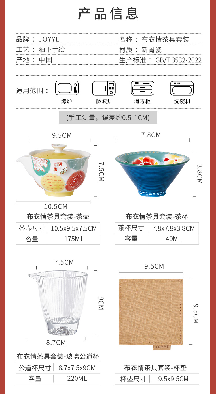 JOYYE 套16布衣情茶具套装 16件套 茶具套装 混色(单位:套)