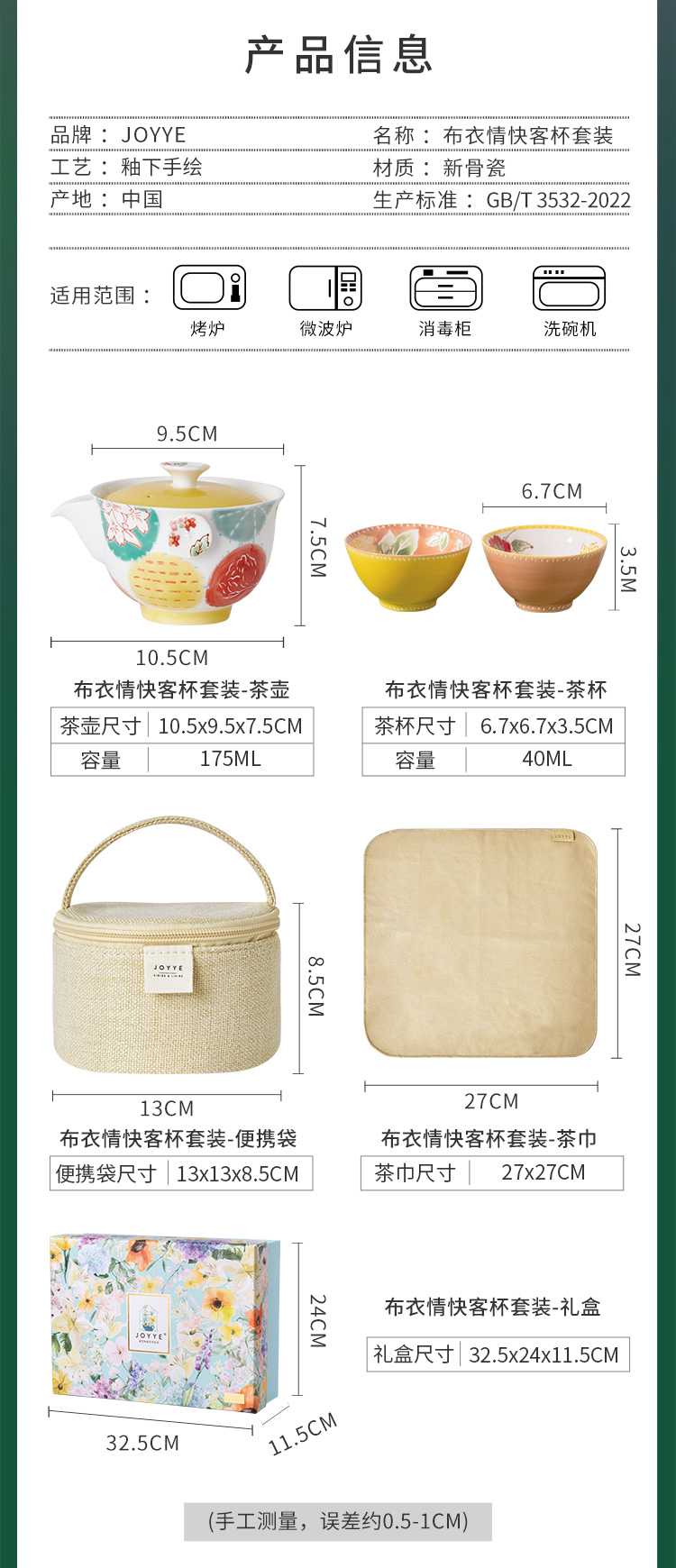JOYYE 套5布衣情快客杯套装 5件套 便携茶具套装 混色(单位:套)