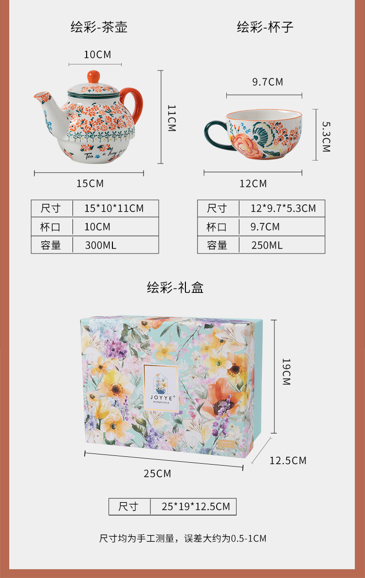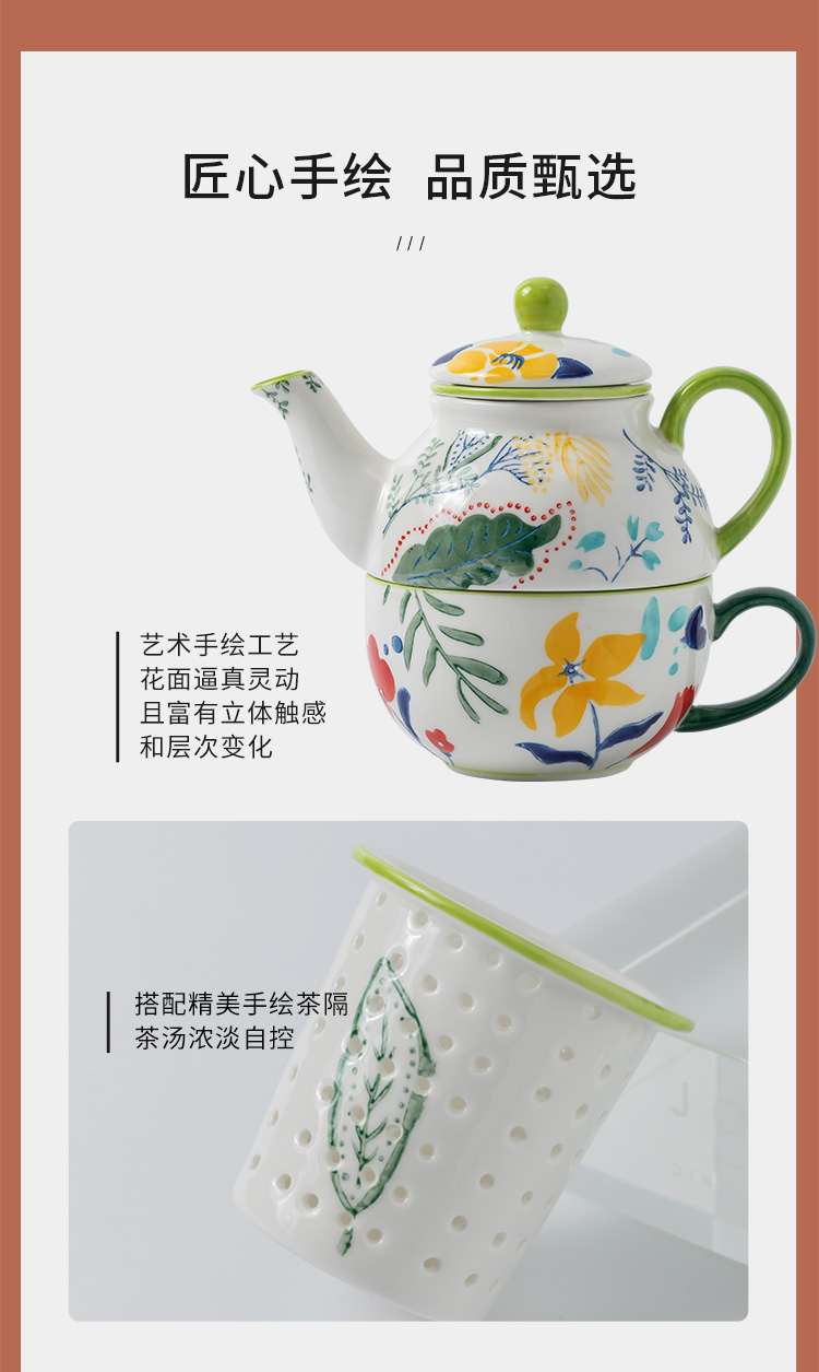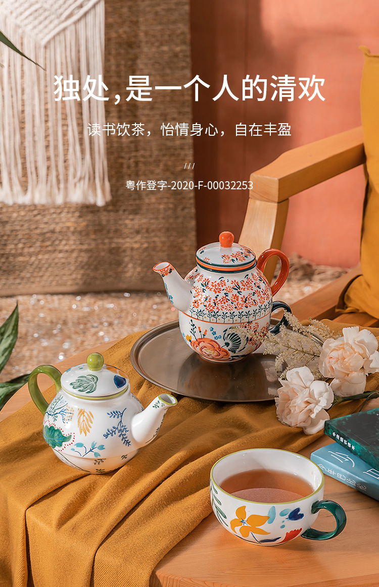 JOYYE 绘·彩茶具 2件套 一壶一杯单人茶具套装 橙色(单位:套)