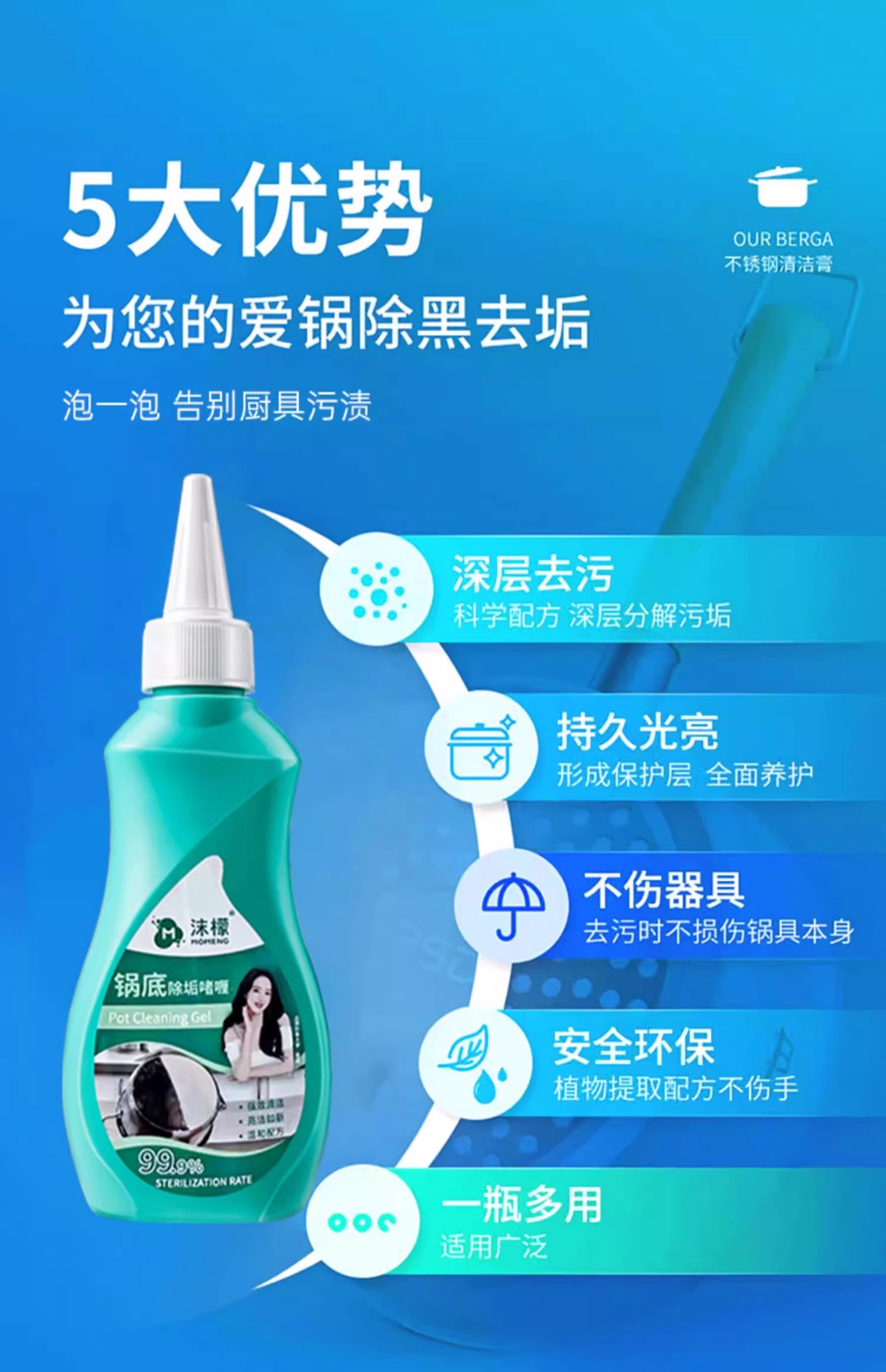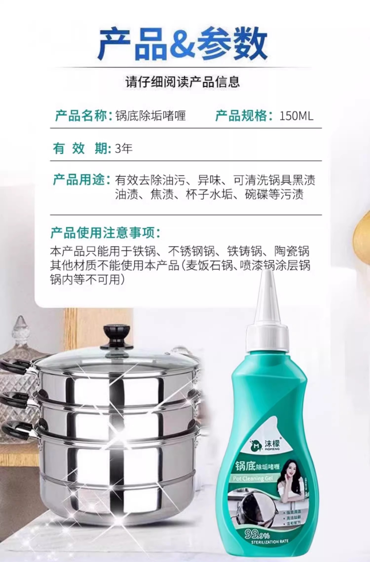 沫檬 不锈钢除垢剂啫喱 150ml 锅底黑垢清洁 绿色(单位:瓶)