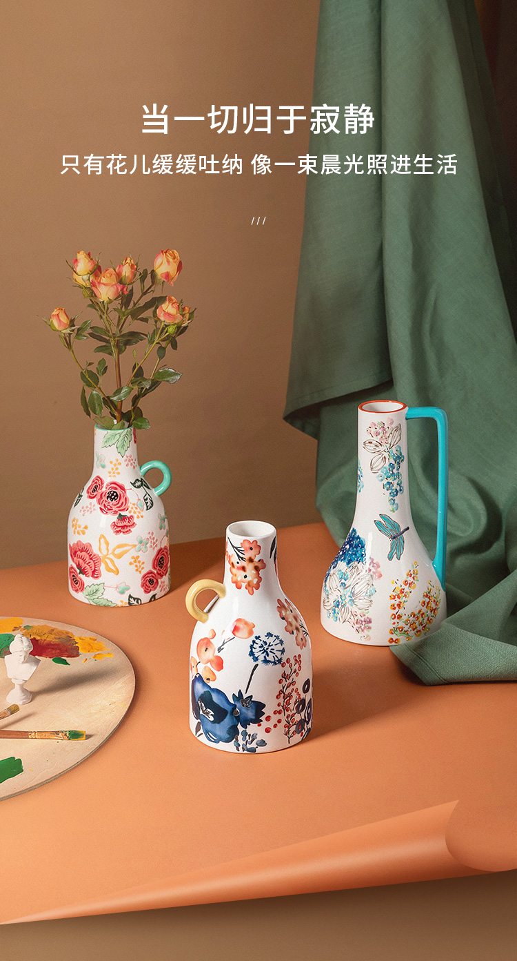 JOYYE E花眷-繁花小花瓶 12x12x20.3cm,瓶口4.8cm 釉下彩花瓶 黄色(单位:个)