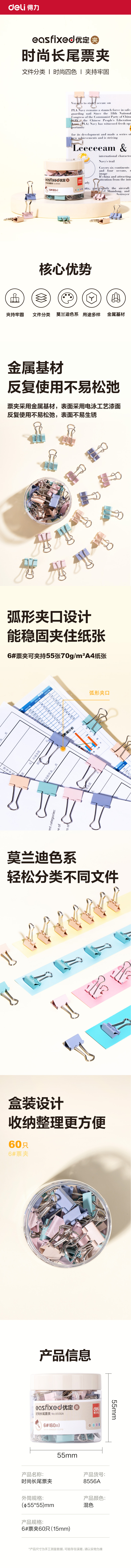 得力(deli) 8556A 60只/筒 长尾票夹 混色(单位:筒)