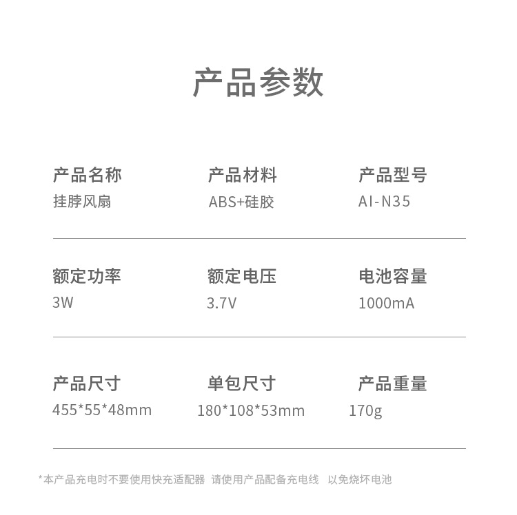 艾青春(AIYOUTH) AI-N35 1000mAh 绕线挂脖风扇 米白色(单位:台)