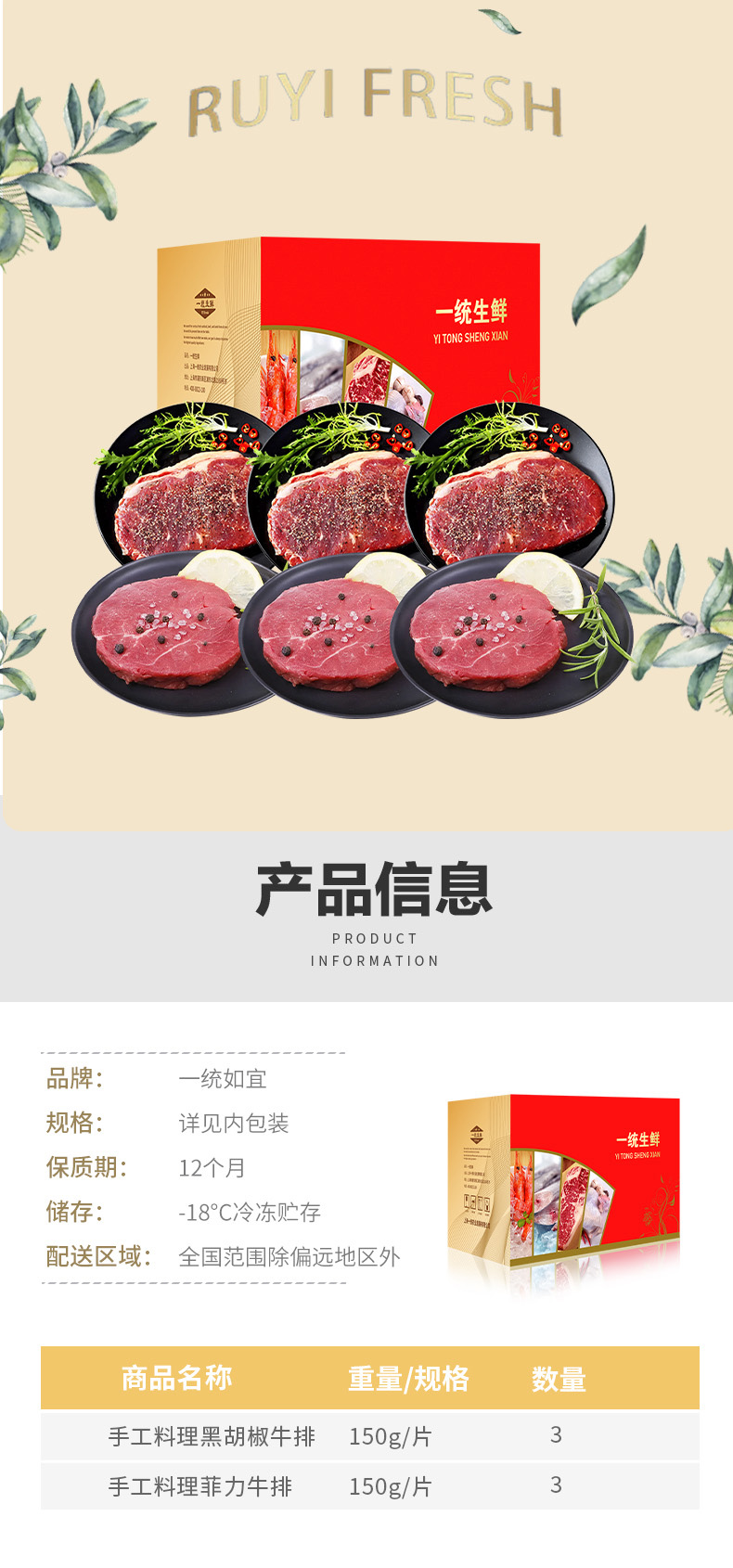 一统如宜 25牛排298型 900g 牛排礼盒 红色(单位:盒)
