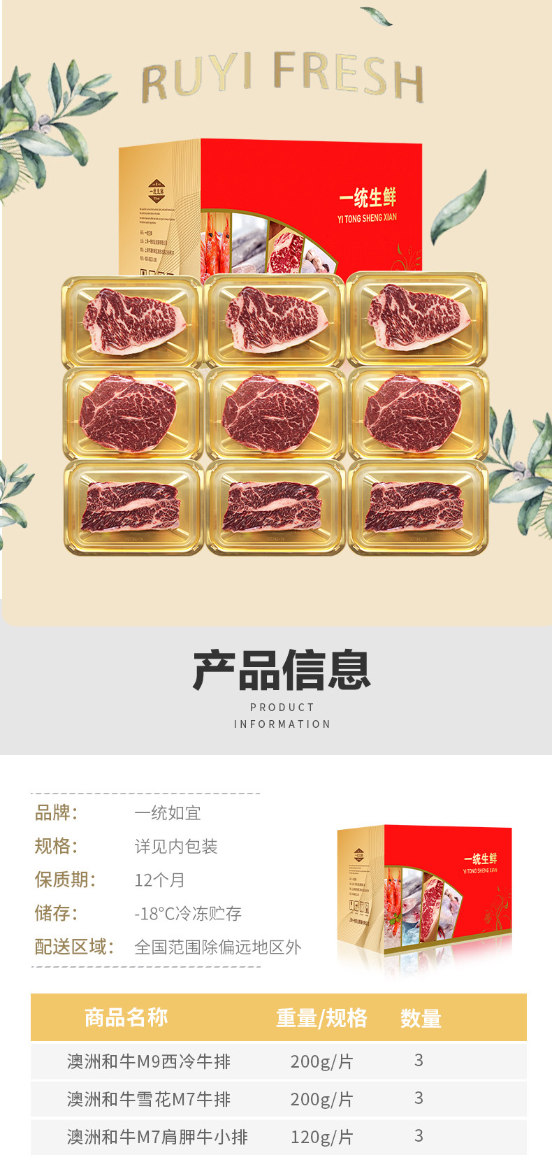 一统如宜 25牛排1288型 1560g 牛排礼盒 红色(单位:盒)