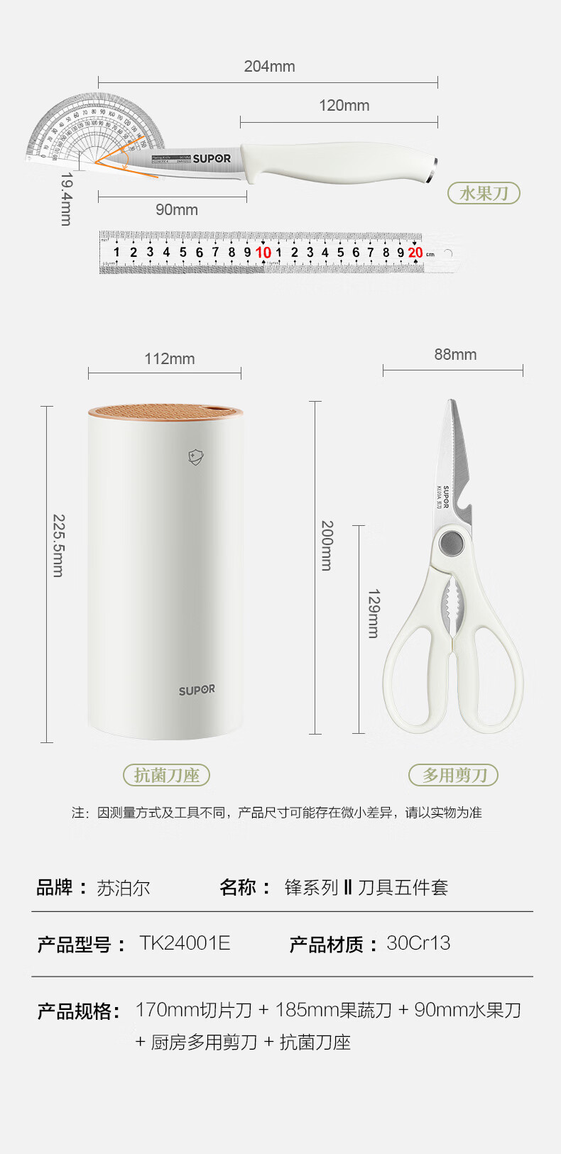 苏泊尔(SUPOR) TK24001E 五件套 锋系列Ⅱ刀具套装 白色(单位:套)