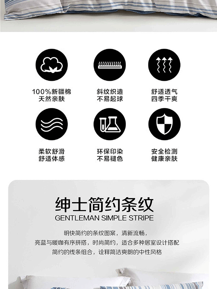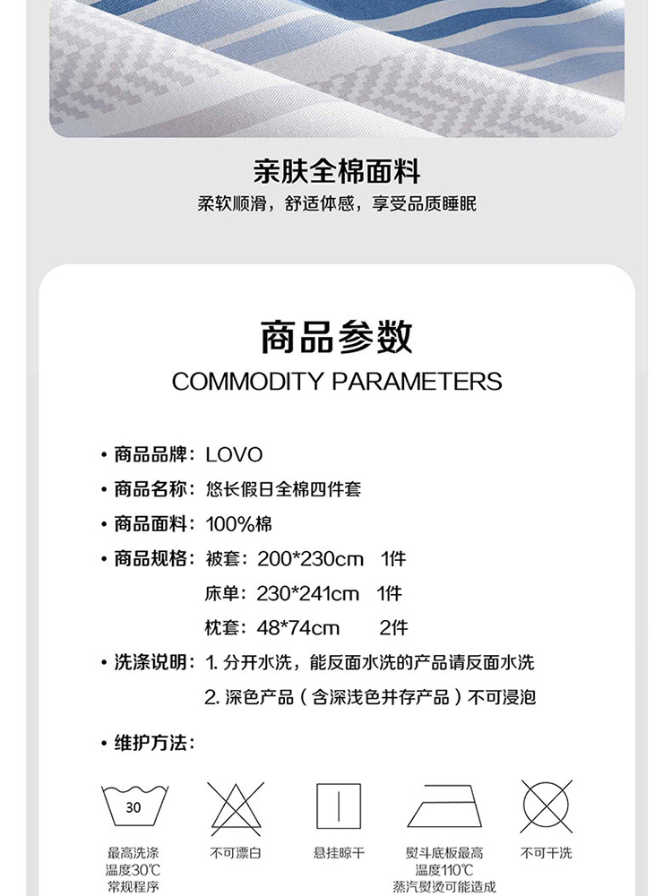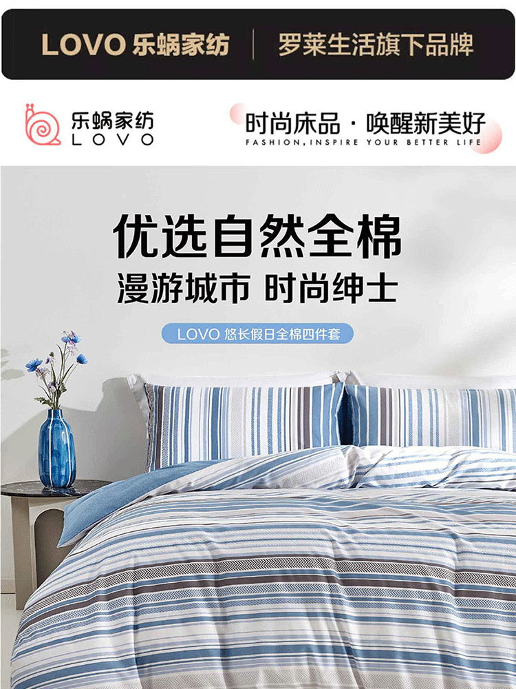 LOVO 悠长假日 200*230cm 全棉四件套 条纹色(单位:套)