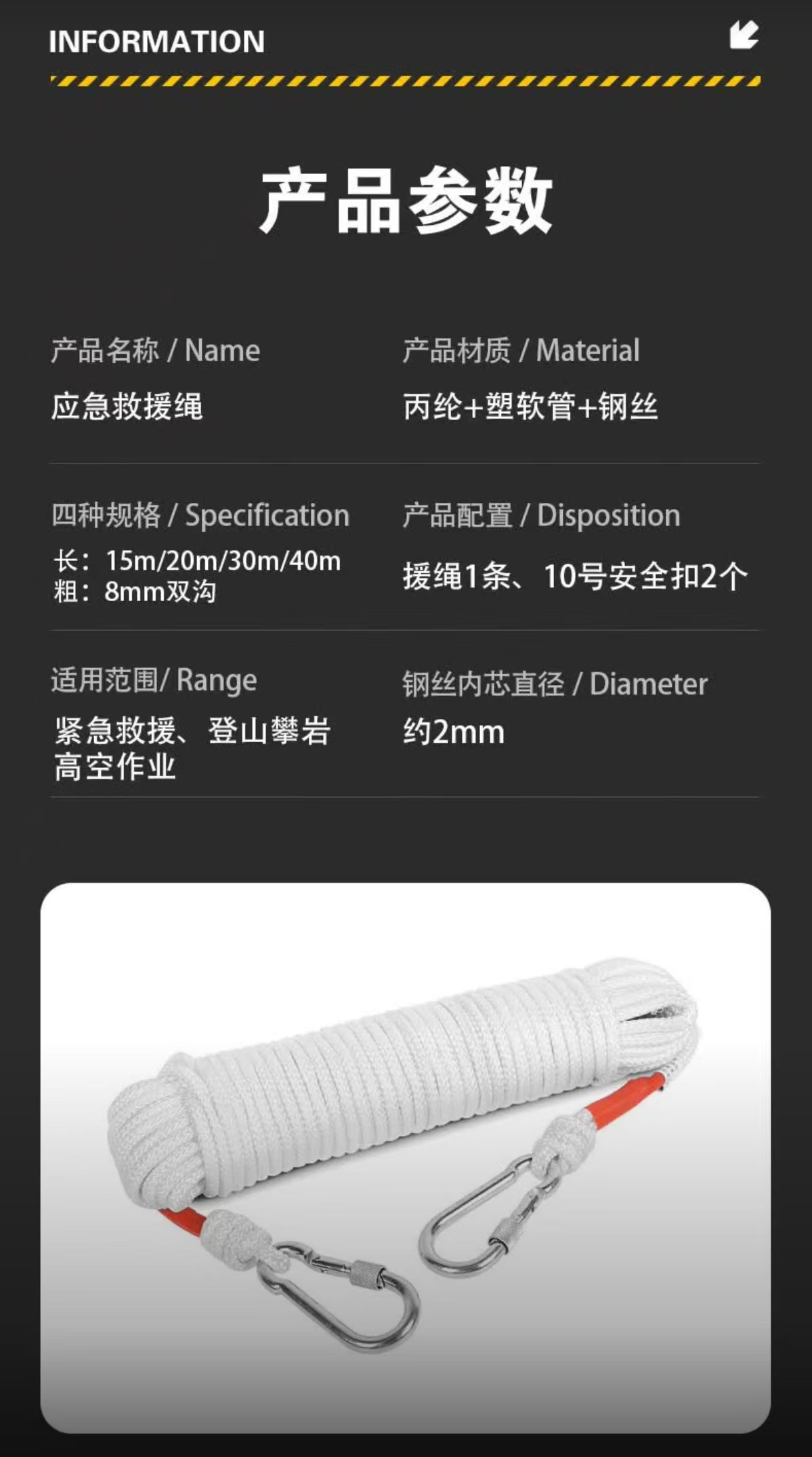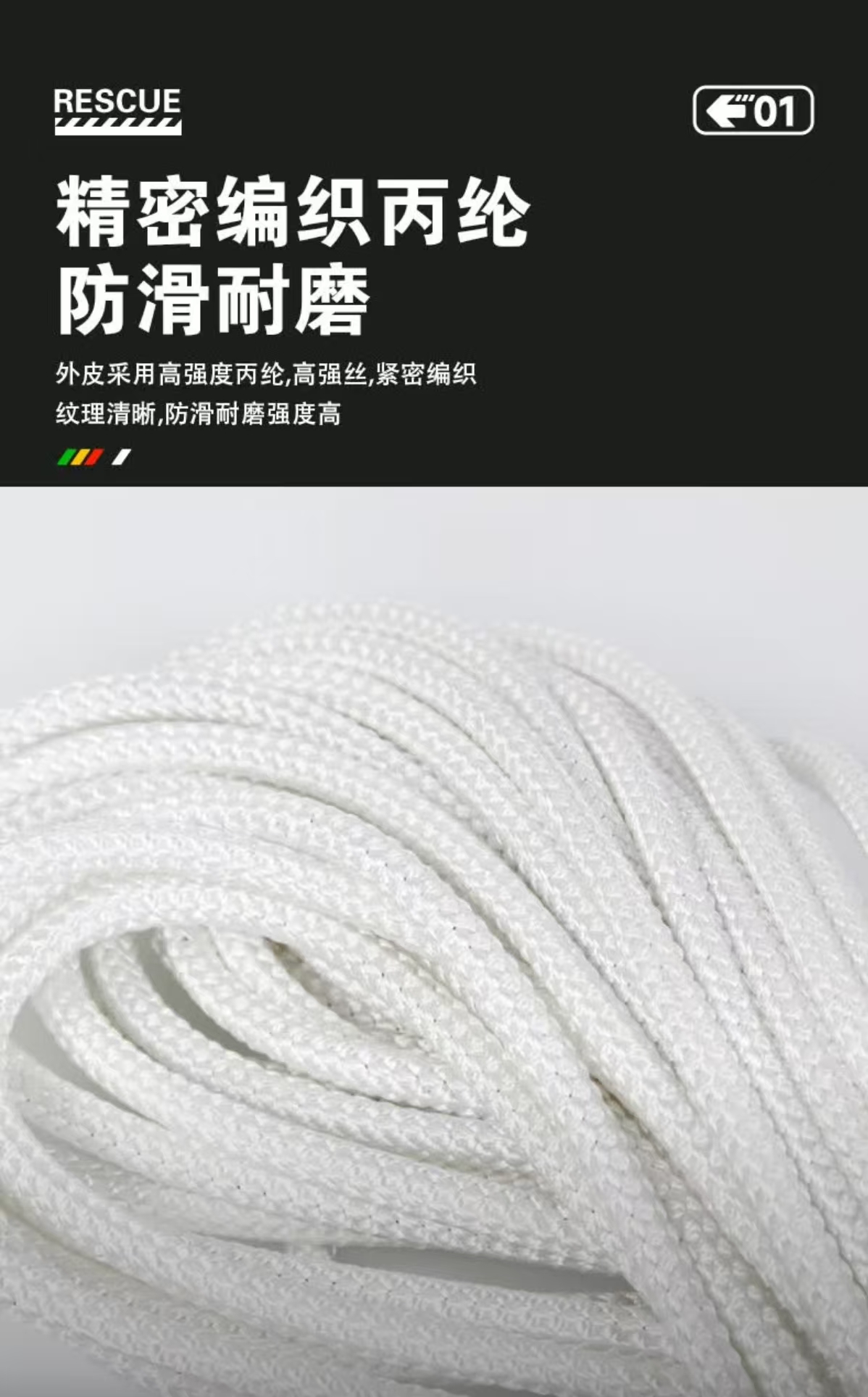四万公里 SWT0165 30米 8mm粗双沟 救援绳 白色(单位:个)