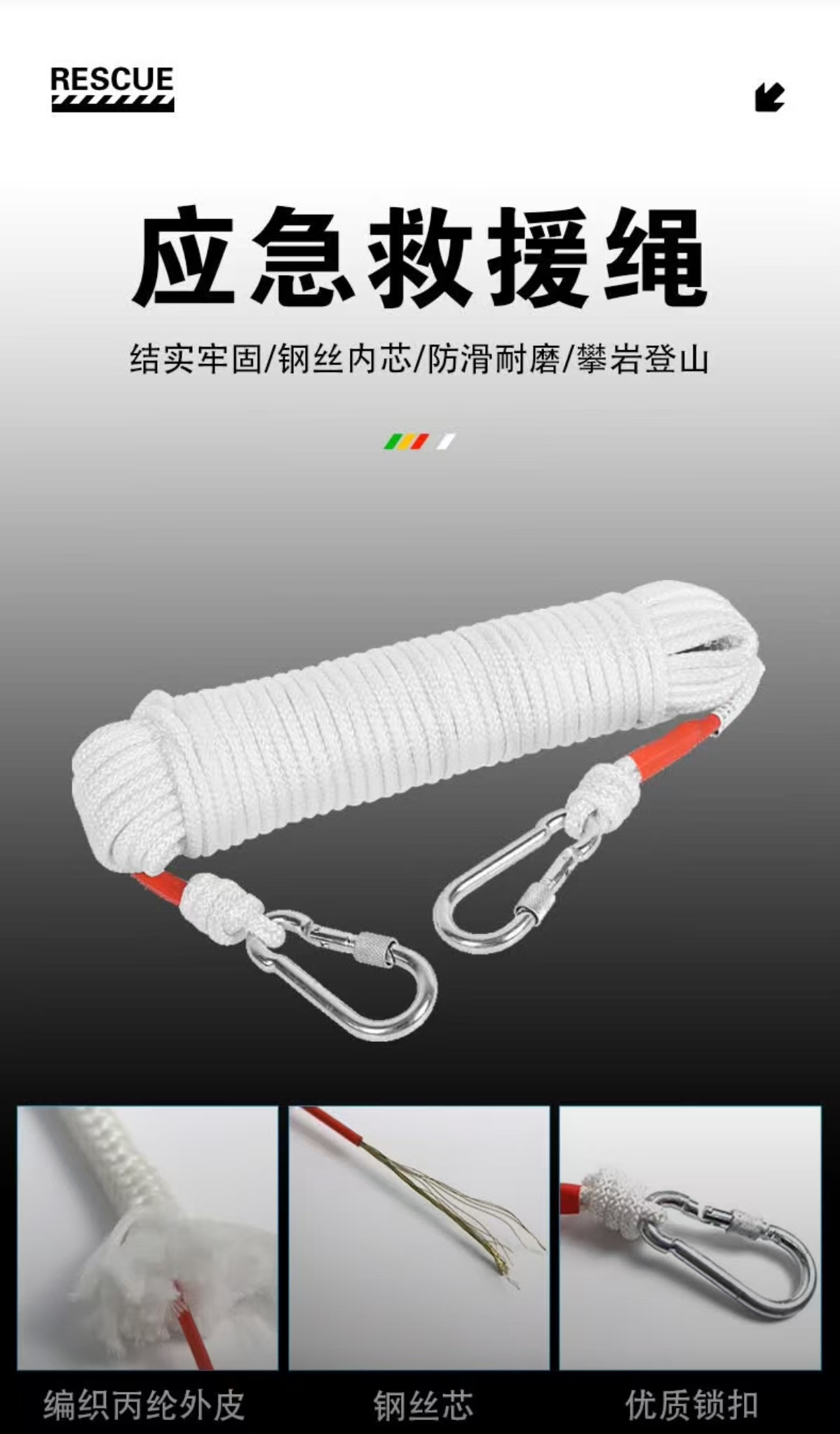 四万公里 SWT0163 8mm粗双沟 15米 救援绳 白色(单位:个)