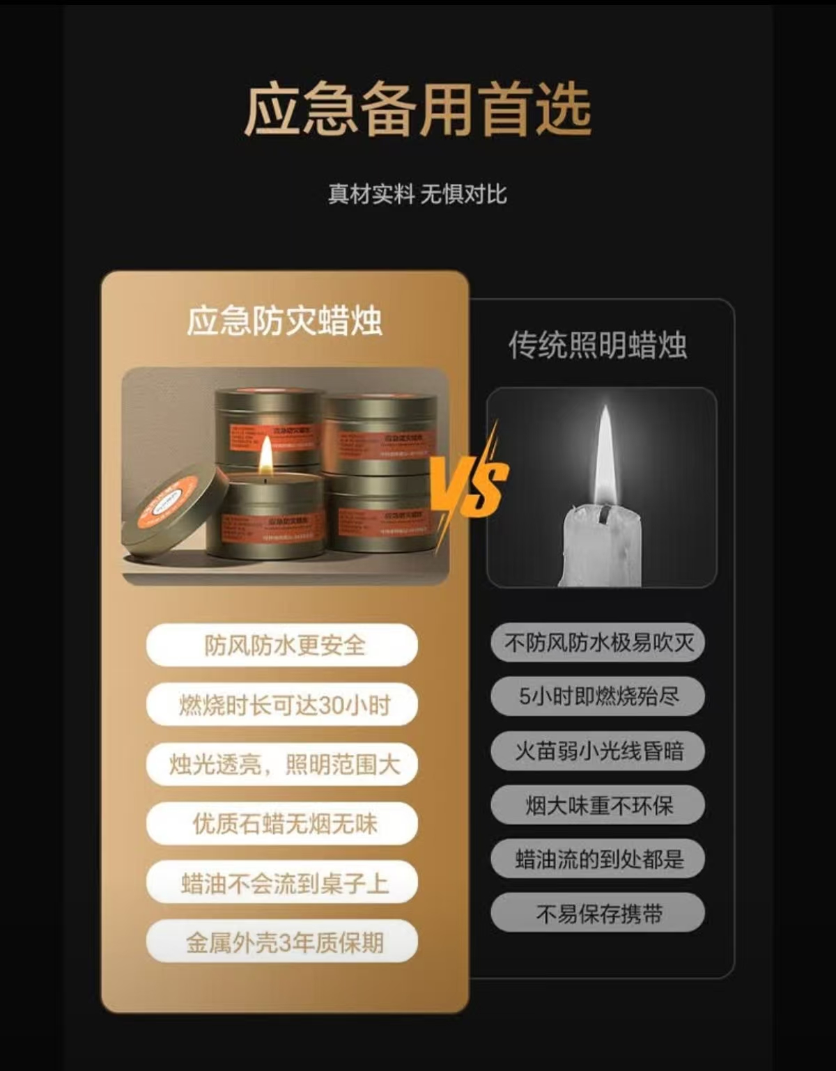 四万公里 SWT0161 3个装80g 应急蜡烛 金色(单位:只)