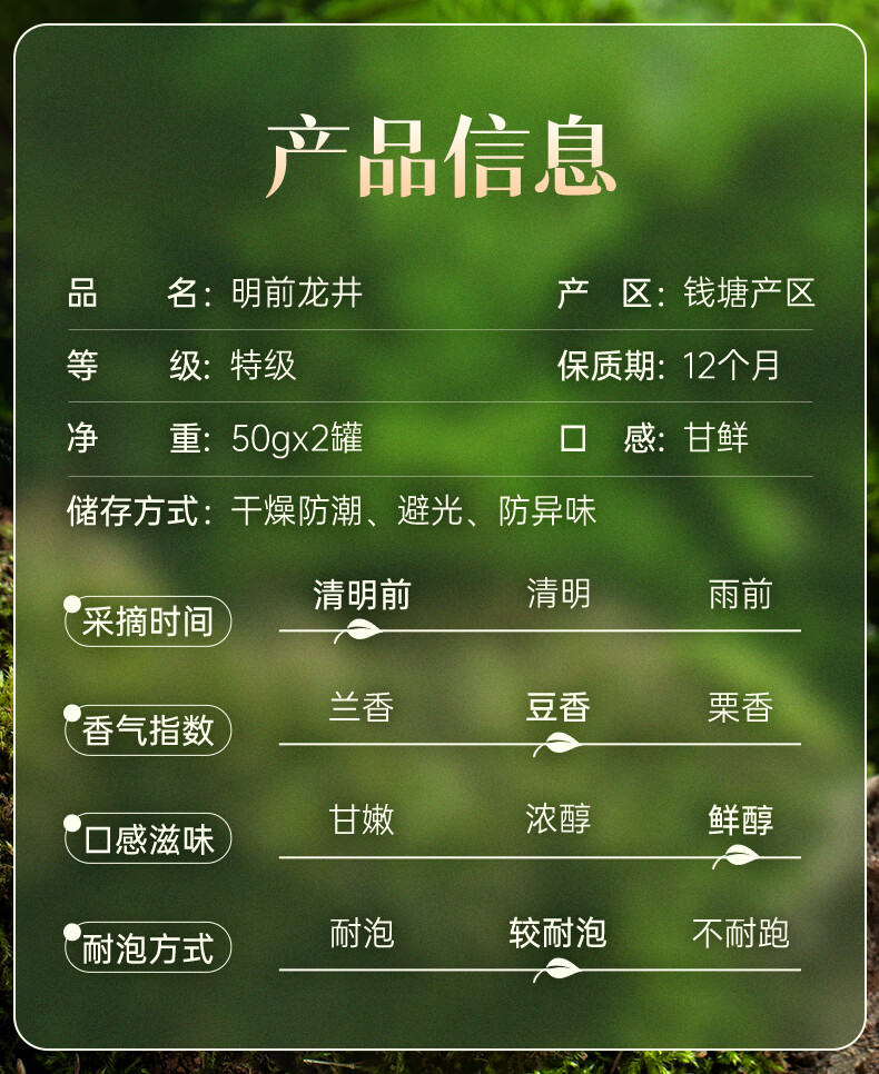 西湖工夫 特级A 50g/罐*2 明前龙井双罐 浅杉绿(单位:组)