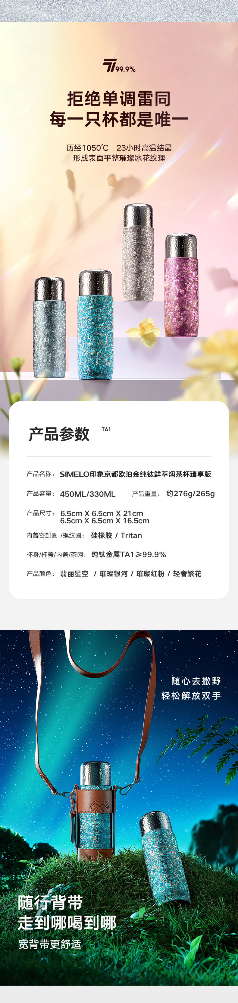 施美乐(SIMELO) 达令版 330ml 欧珀金纯钛鲜萃焖泡杯 翡丽星空(单位:个)