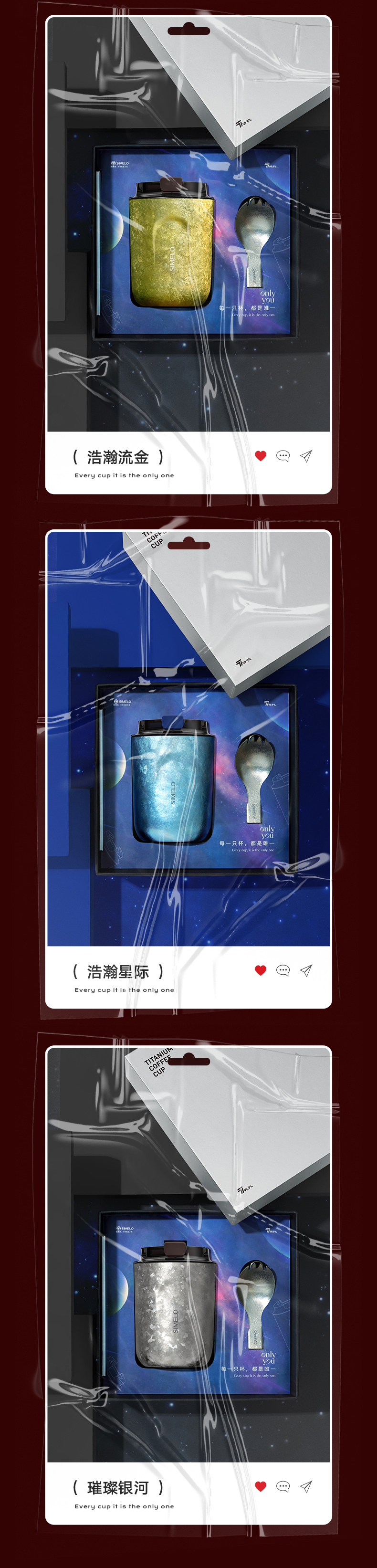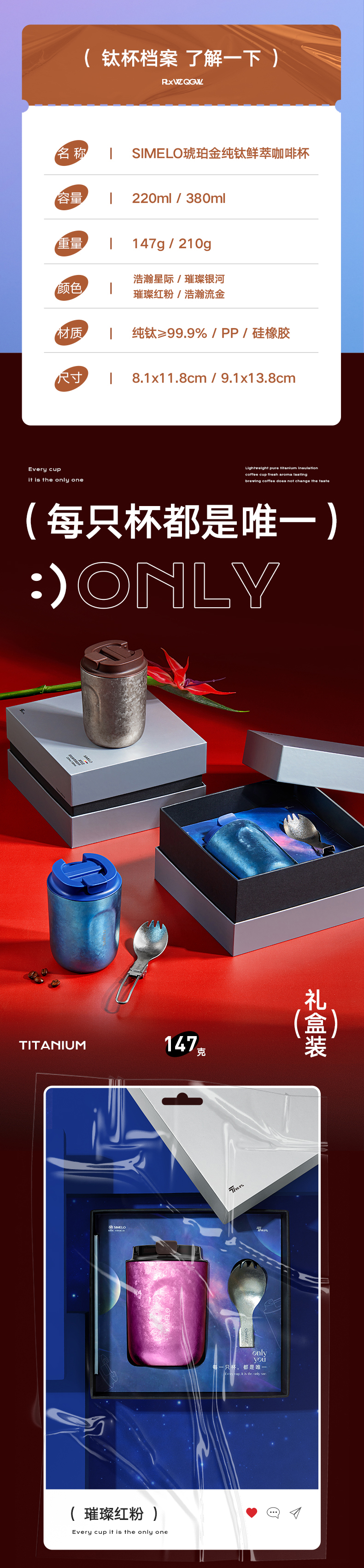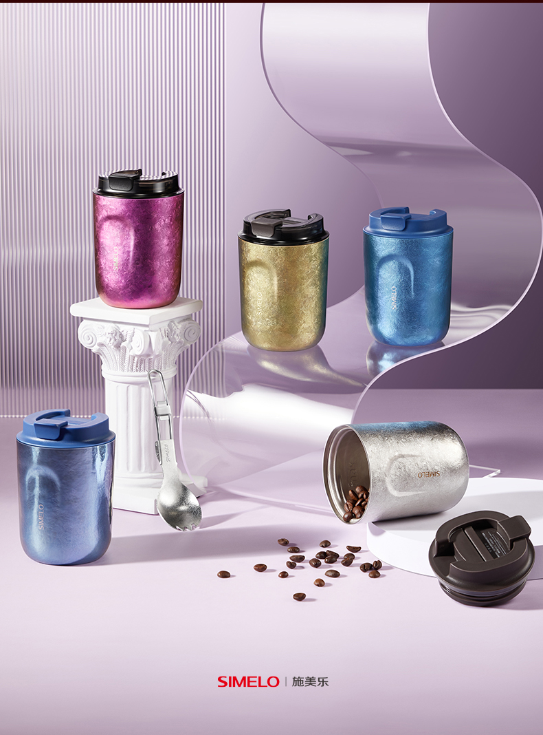 施美乐(SIMELO) 4869 220ml 琥珀金纯钛咖啡杯 魅时尚(STAR璀璨红粉)(单位:套)