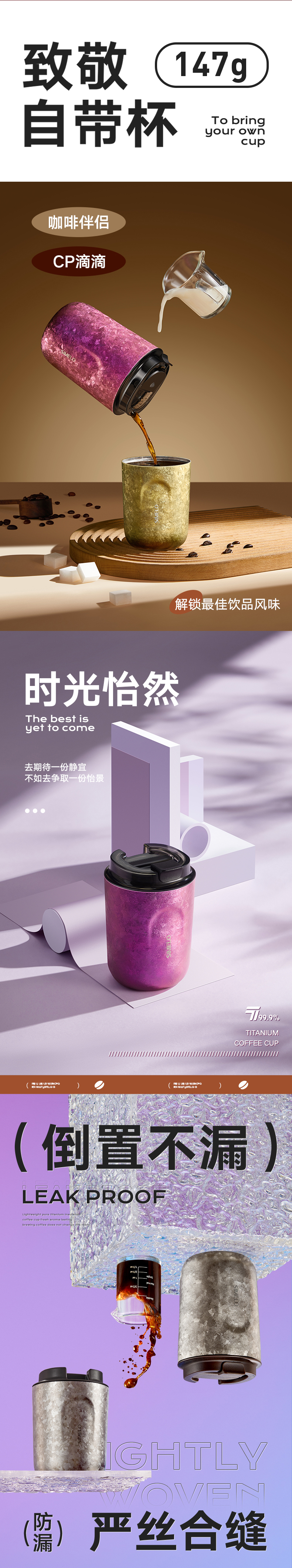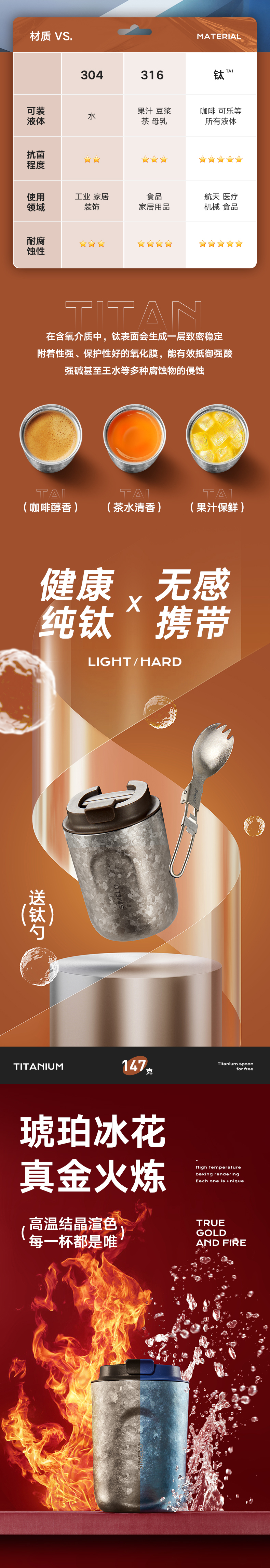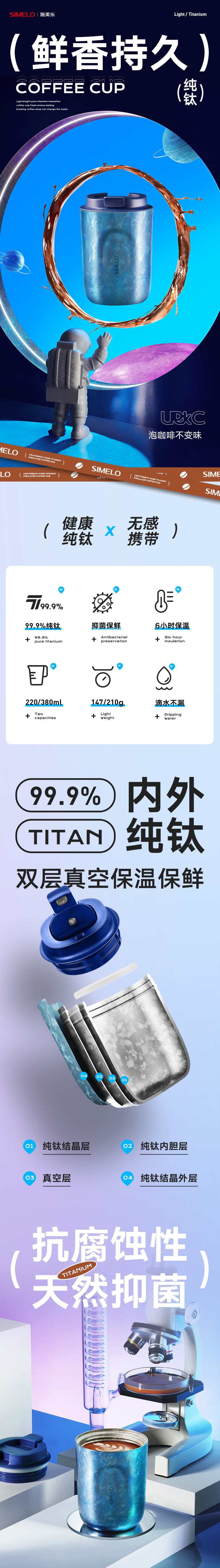 施美乐(SIMELO) 4869 220ml 琥珀金纯钛咖啡杯 魅时尚(STAR璀璨红粉)(单位:套)
