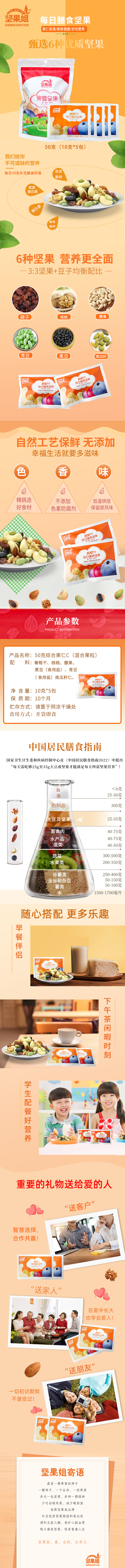 坚果姐 100分儿童综合果仁 每日膳食坚果 50g(10g*5包) 混色(单位:包)