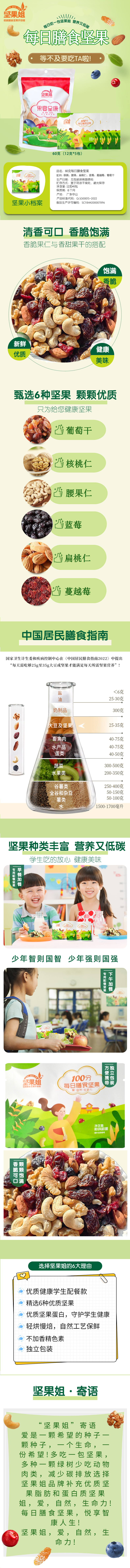 坚果姐 100分儿童每日膳食坚果60g 每日坚果 12g*5袋 绿色(单位:包)