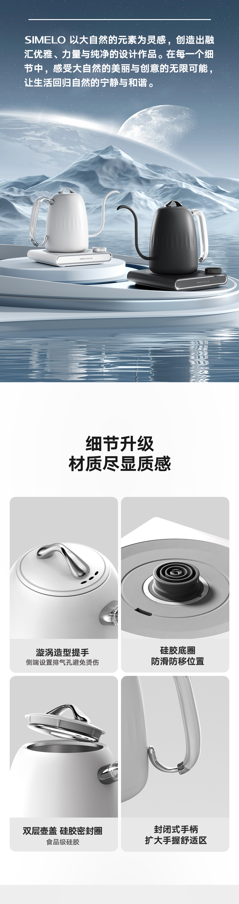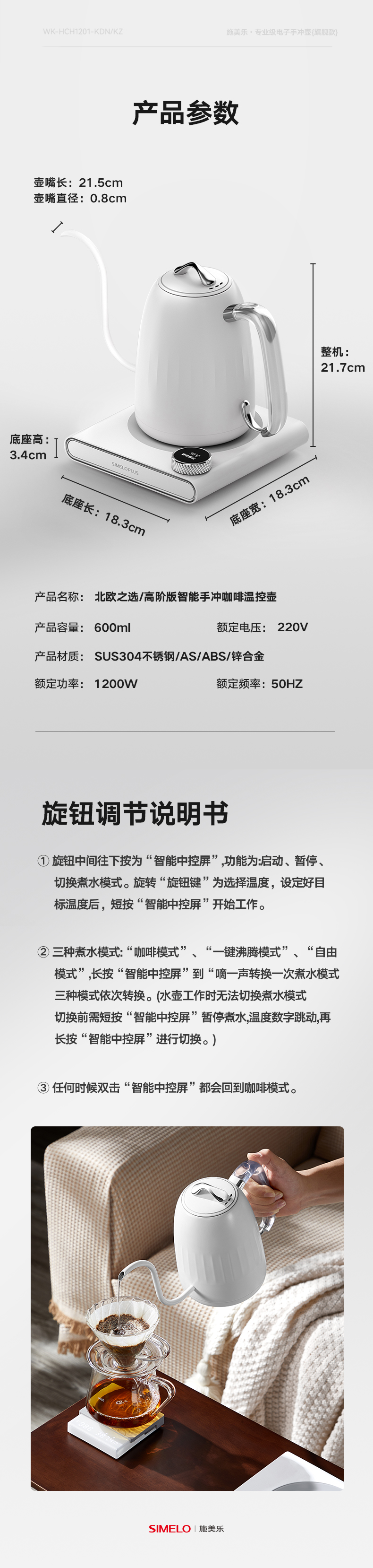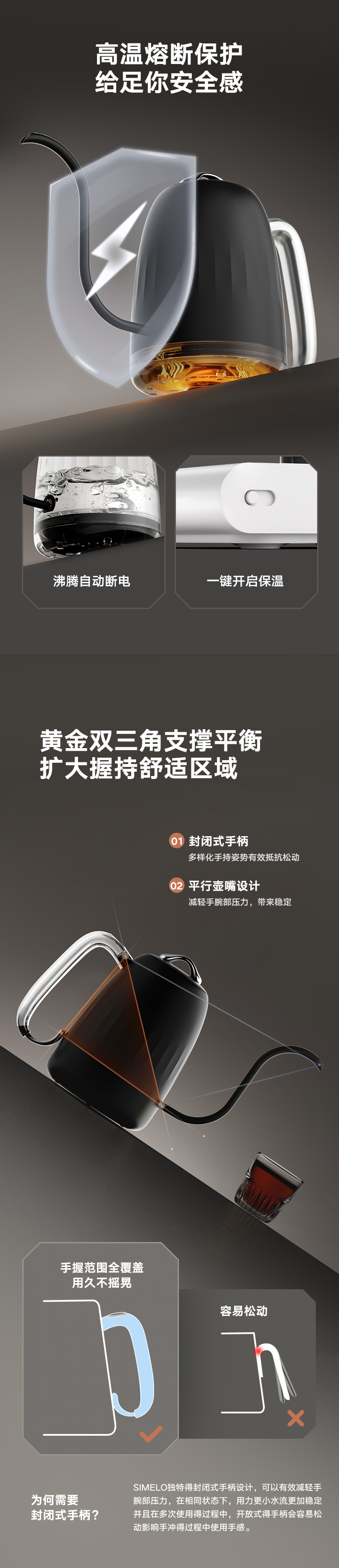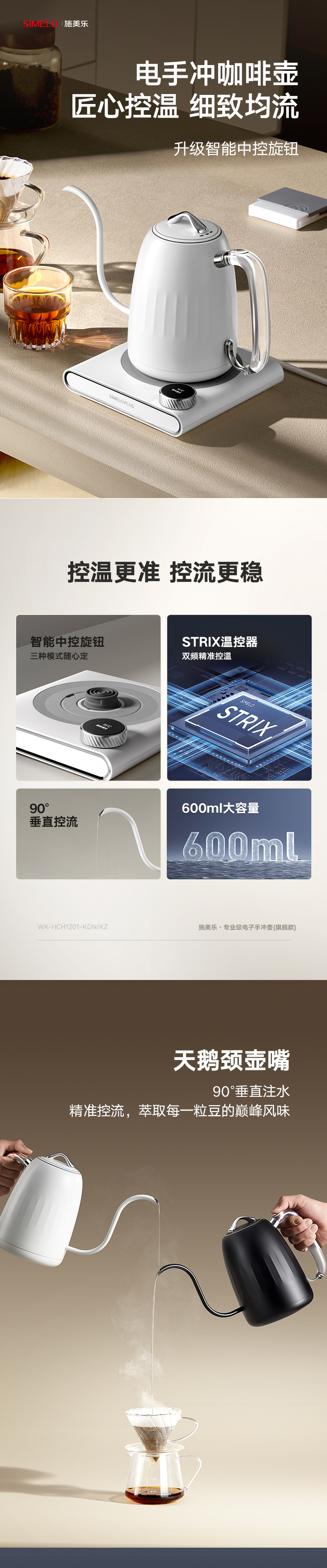 施美乐(SIMELO) 4896 600ml 高阶版智能控温壶 黑色手冲壶(单位:套)