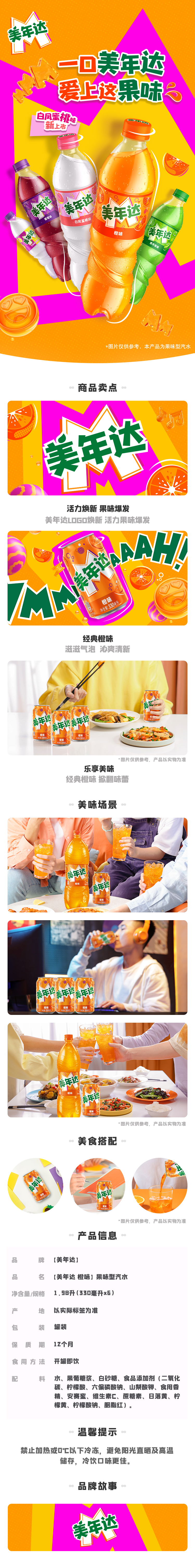 百事可乐 美年达 Mirinda 橙味 碳酸饮料汽水 330ml*6瓶 活力焕新 果味爆发 橙色(单位:箱)