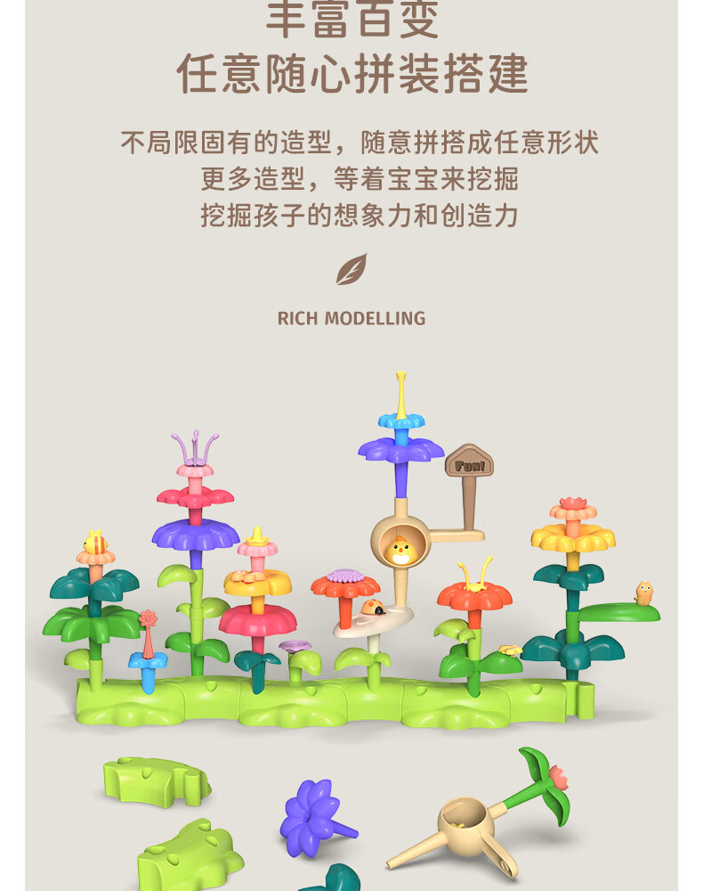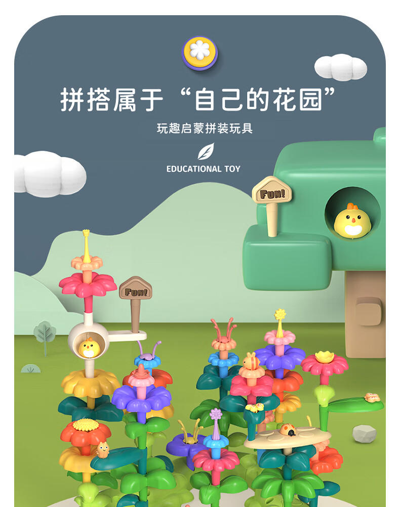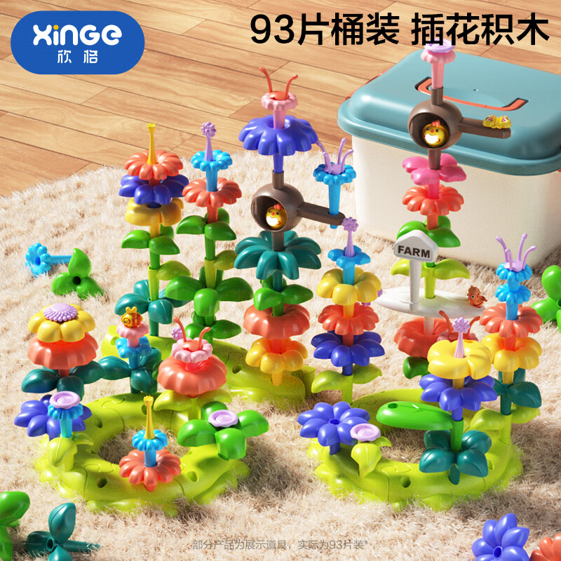 欣格 插花积木花园玩具 拼装积木花丛 93pcs 混色(单位:套)
