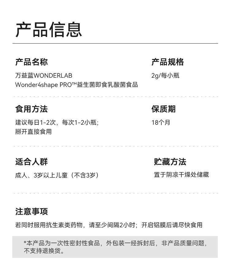 WonderLab BODY100益生菌 2g*30瓶/盒 大基数体重管理 水蓝色(单位:盒)
