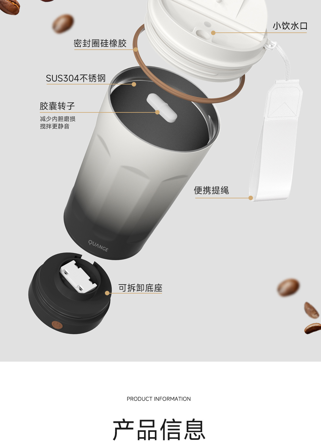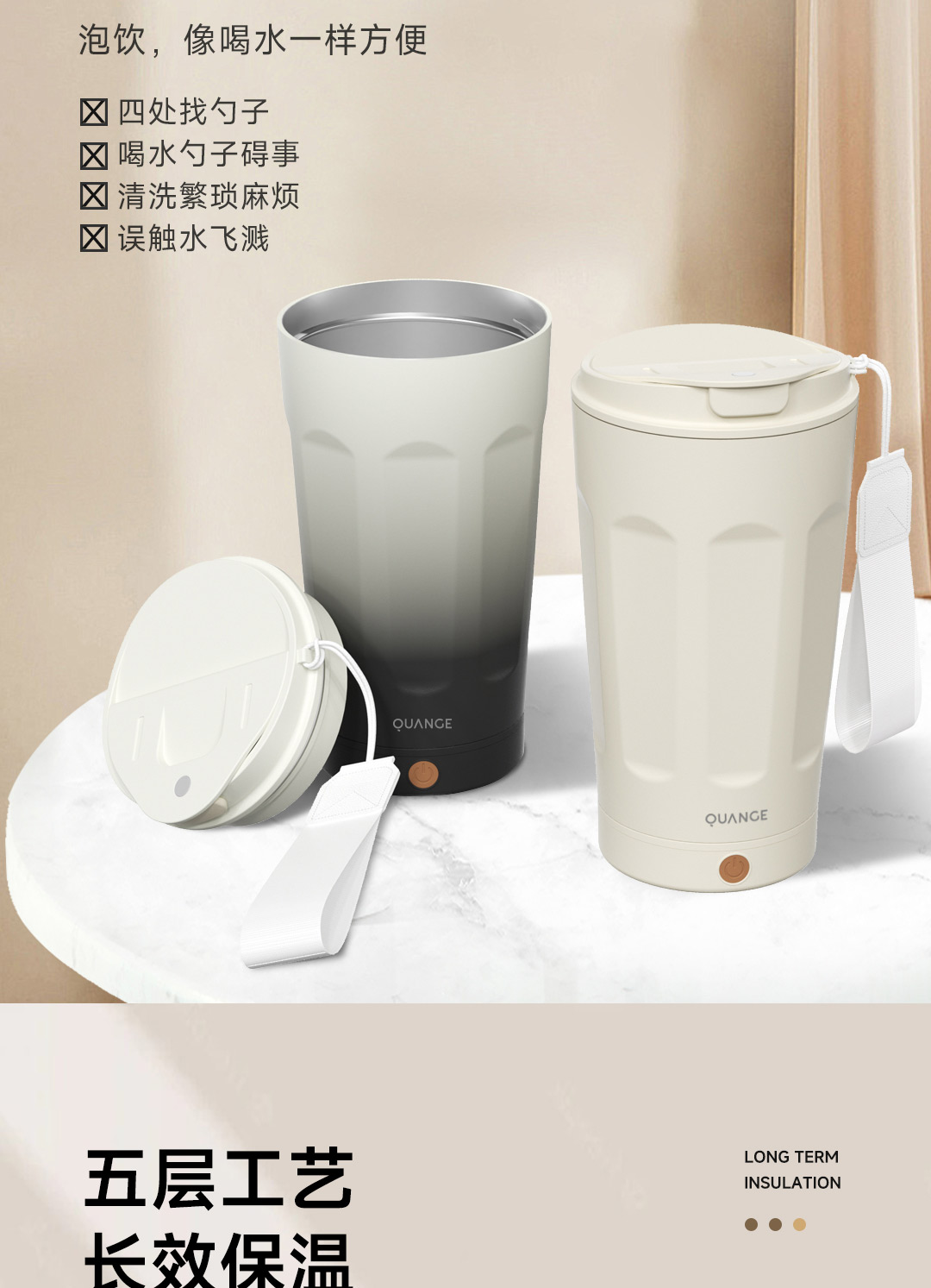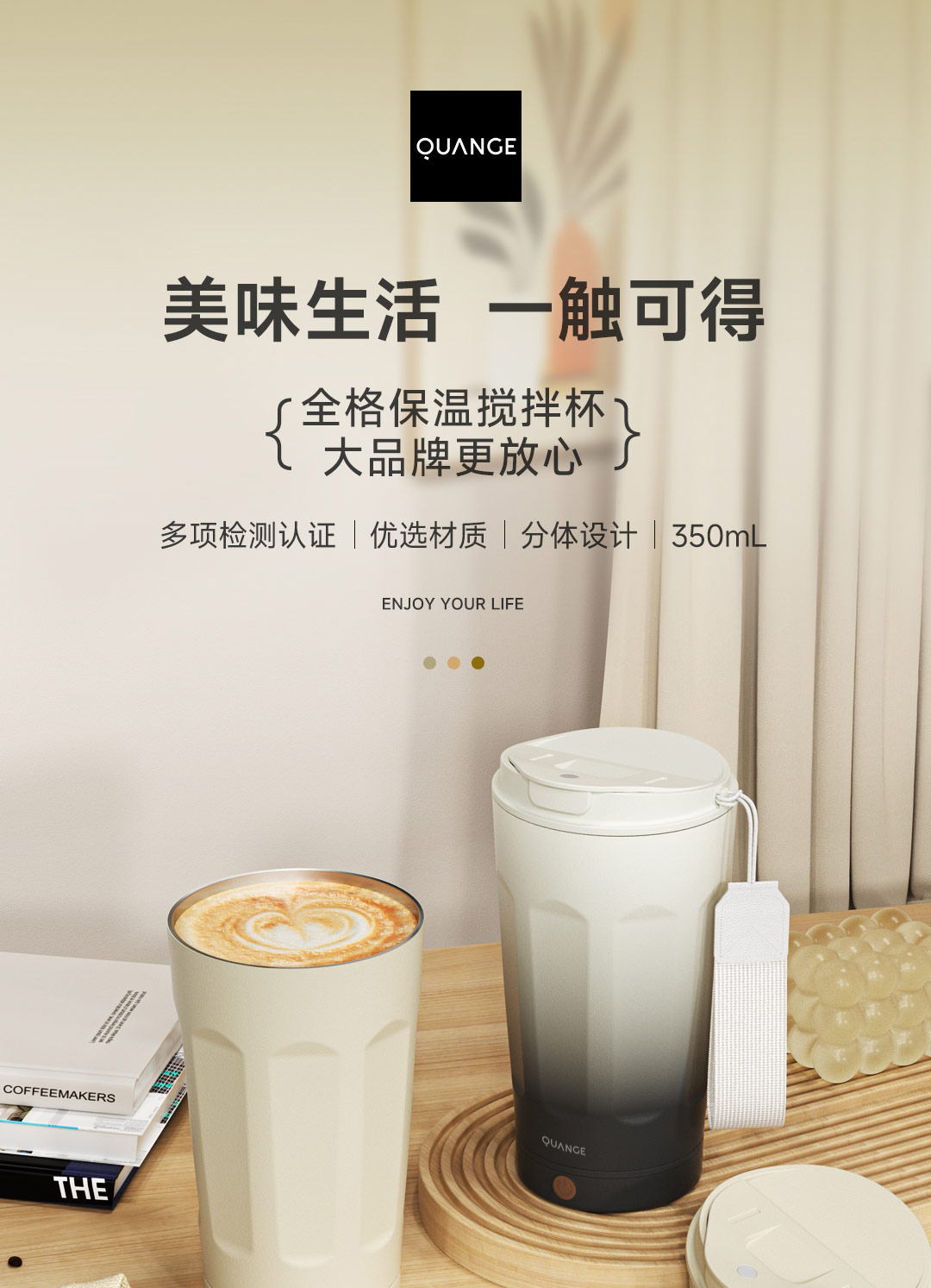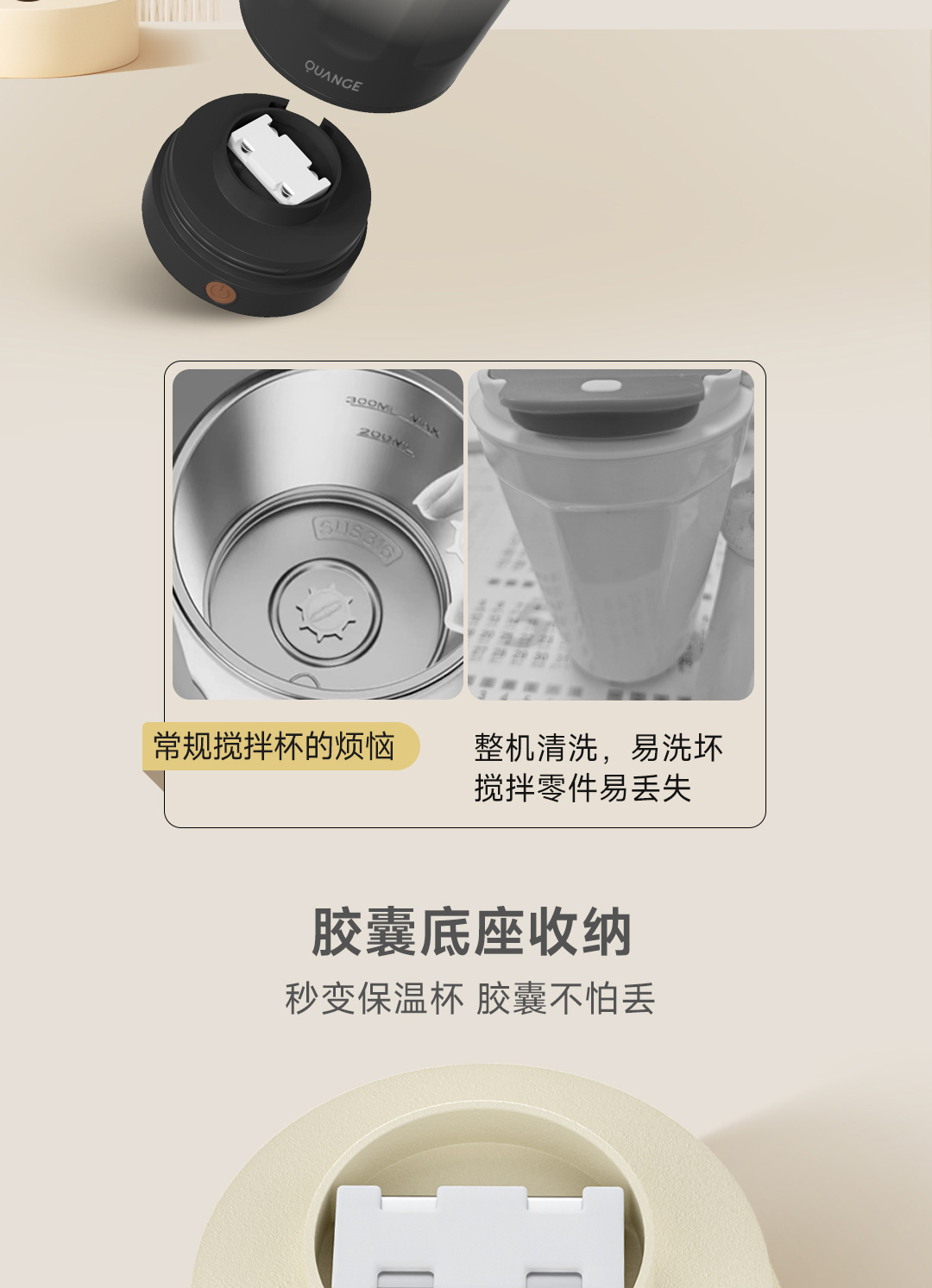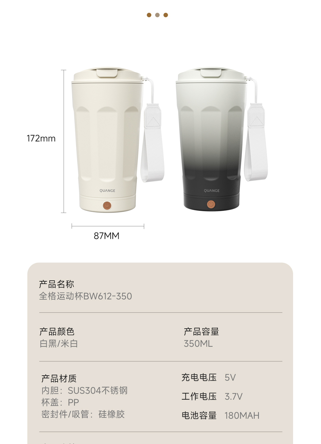全格(Quange) BW612-350B 350ml 搅拌保温杯 米白(单位:个)