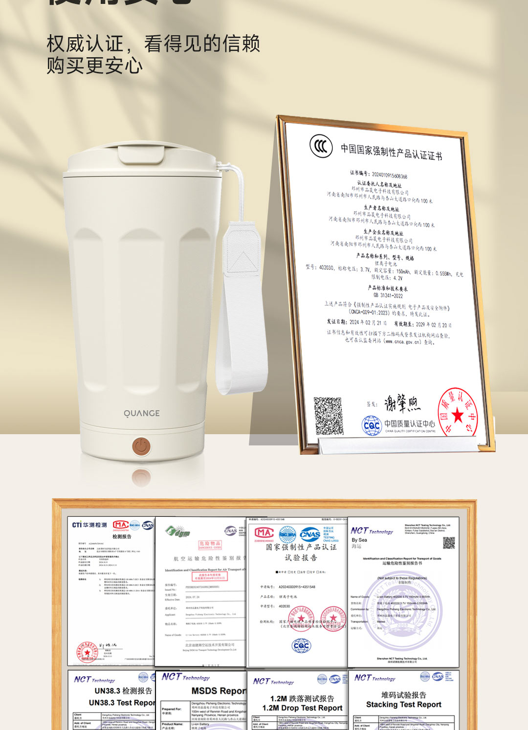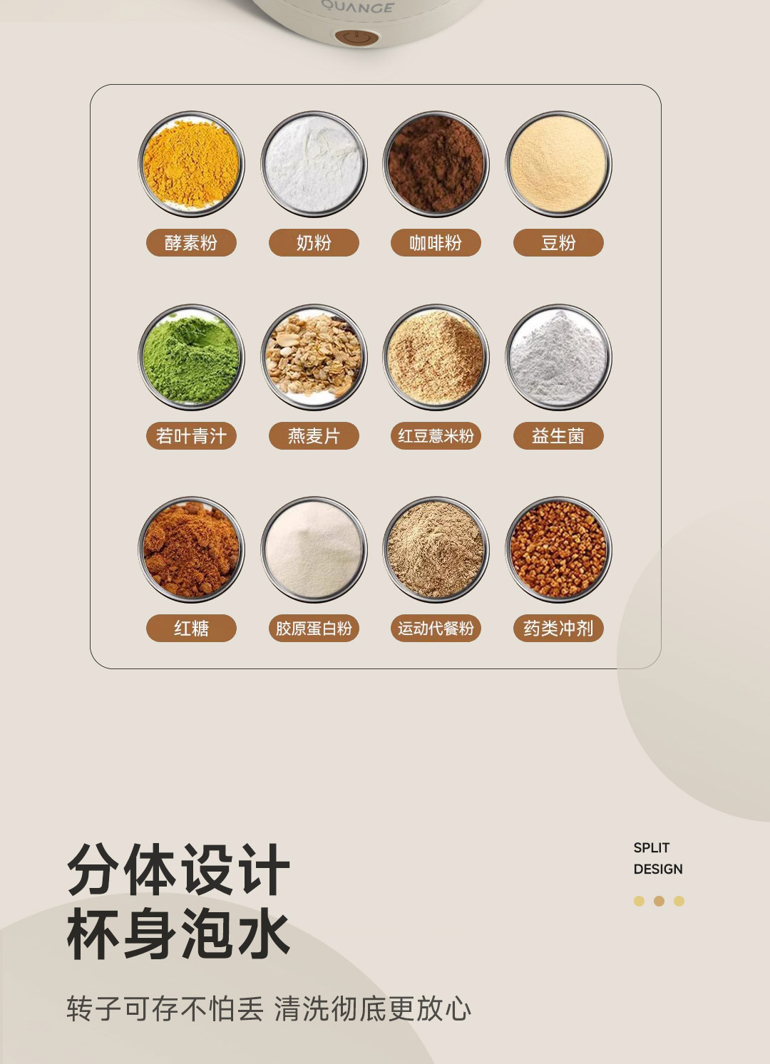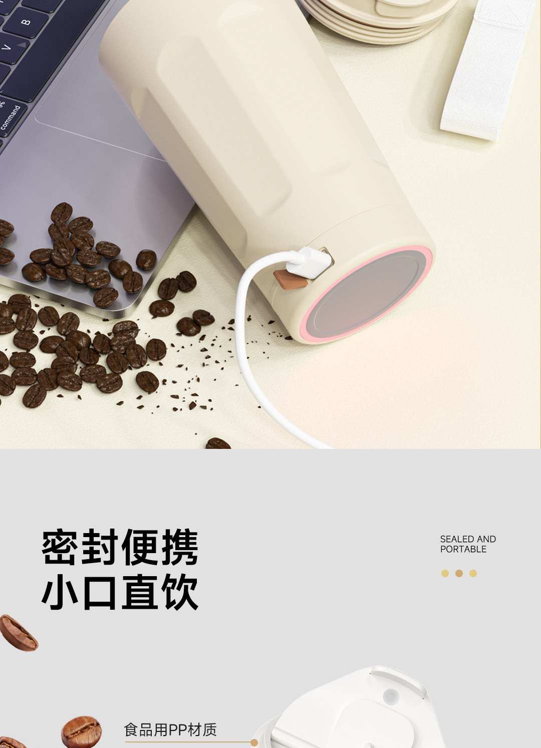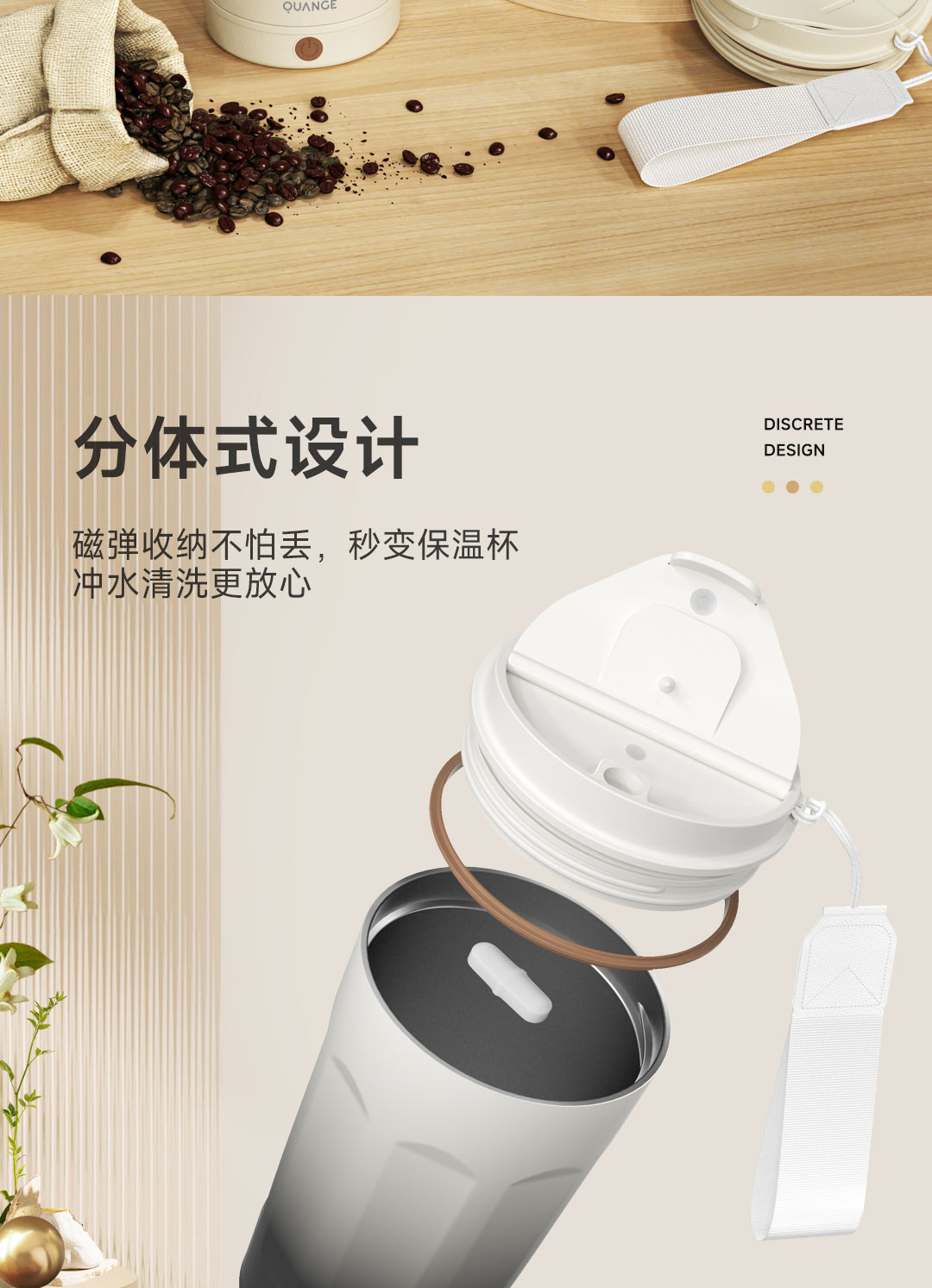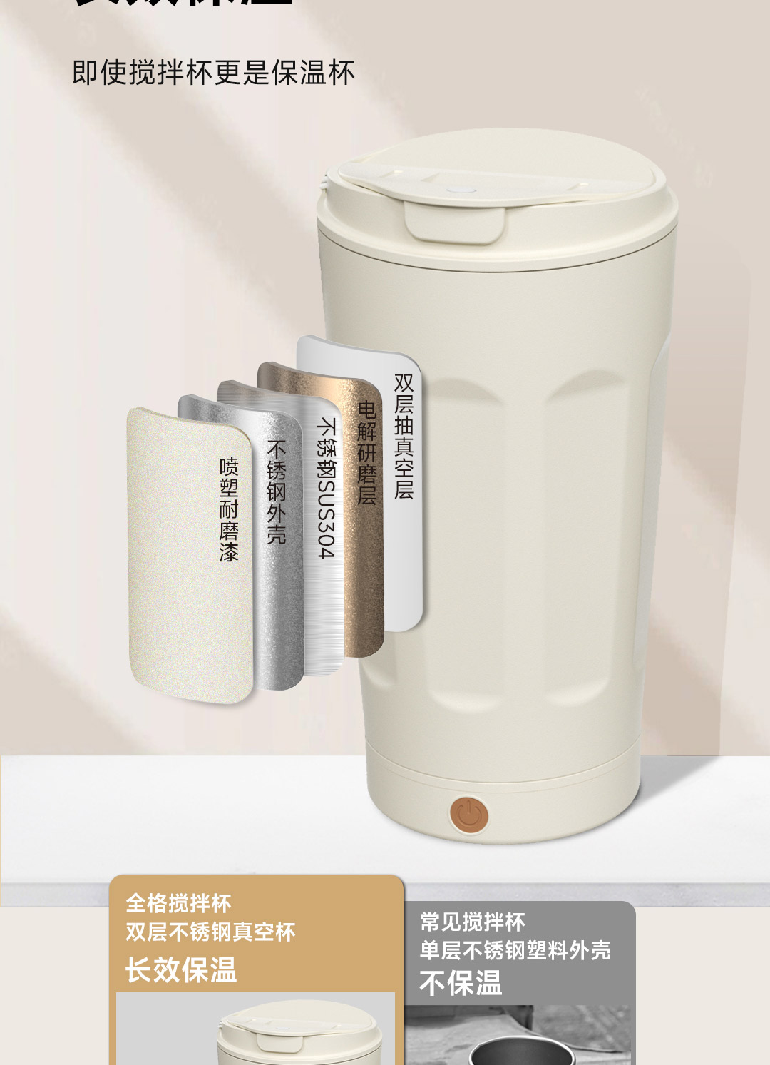 全格(Quange) BW612-350B 350ml 搅拌保温杯 米白(单位:个)