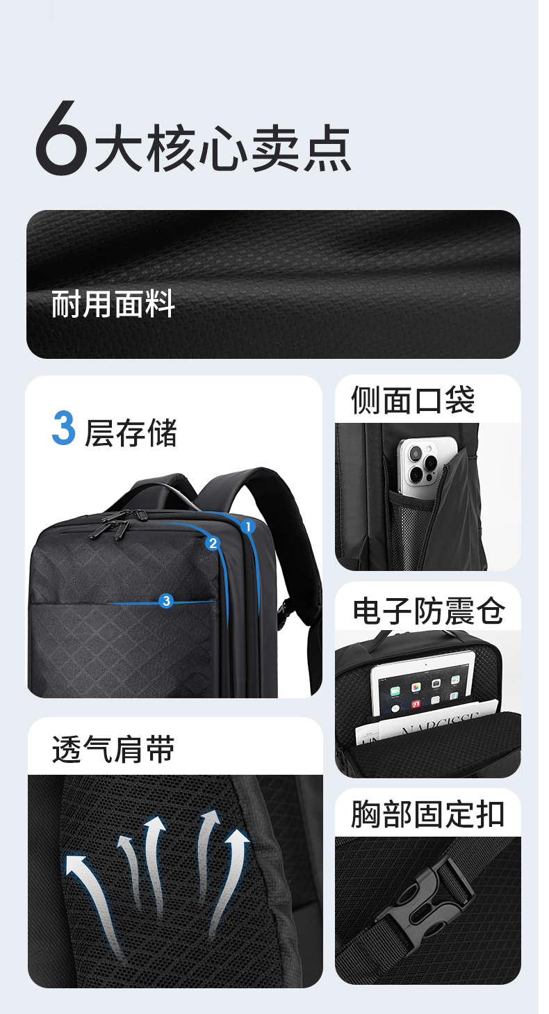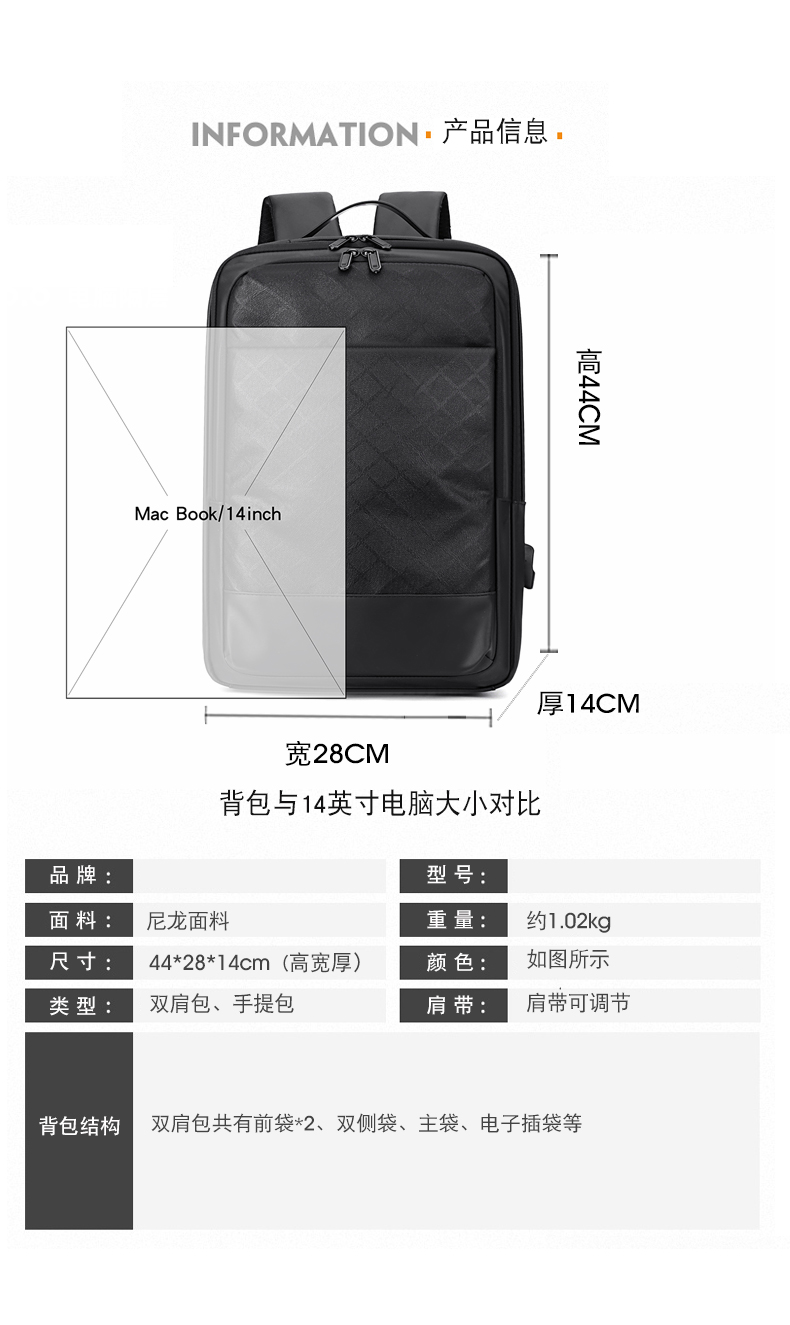 形象派(X.X.PIE) xxp-22301 1.02kg 都市通勤休闲双肩包 黑色(单位:个)
