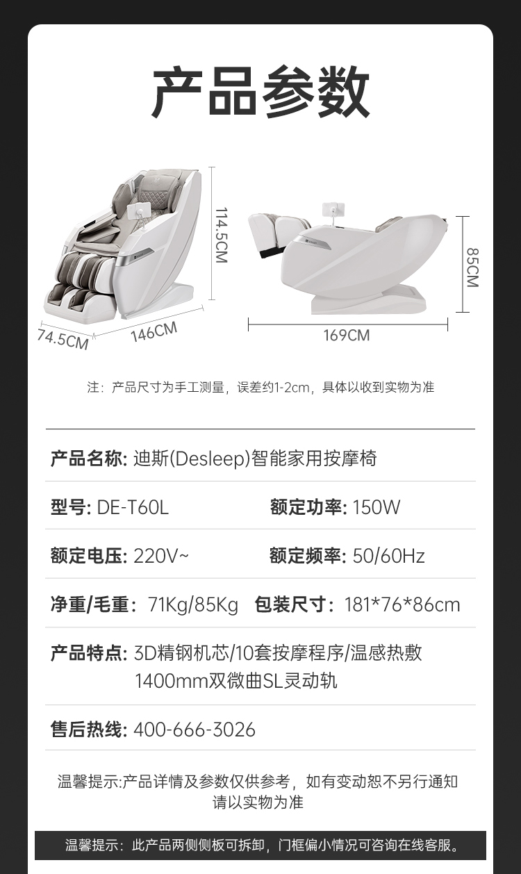 迪斯(Desleep) DE-T60L 220V 按摩仪 白色(单位:台)