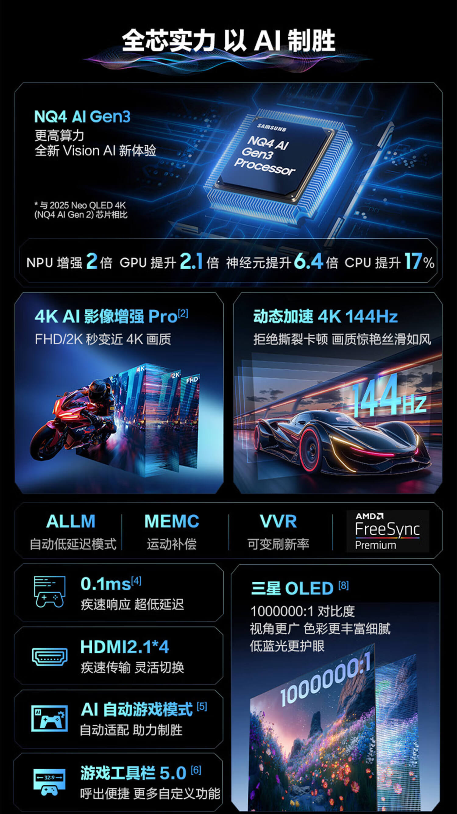 三星(SAMSUNG) OLED游戏电视144Hz无广告 二级能效 QA83S90FAEXXZ 83英寸 黑色(单位:件)