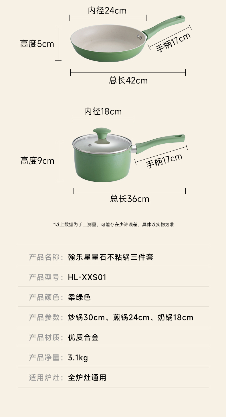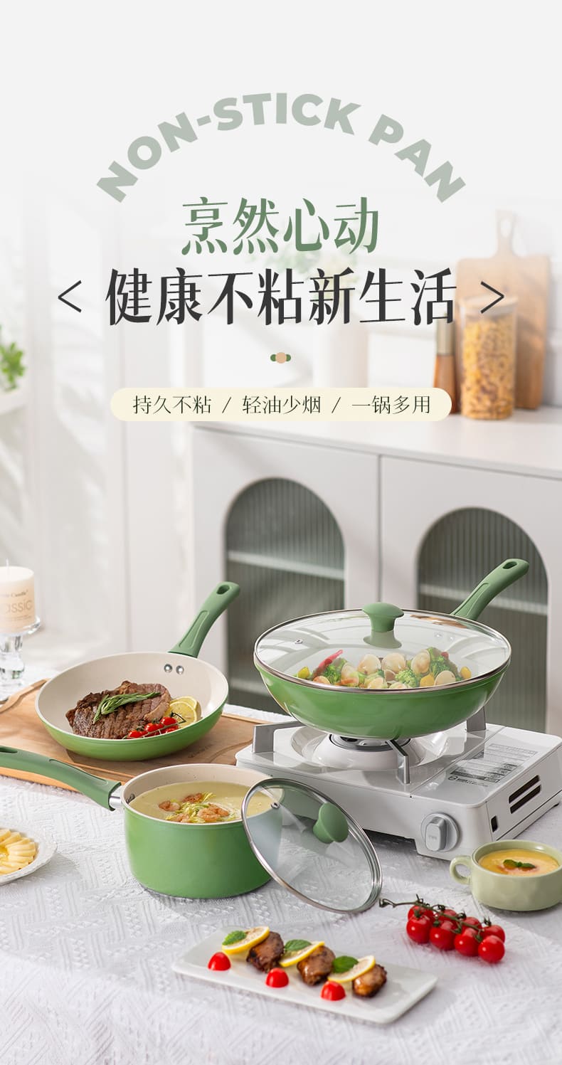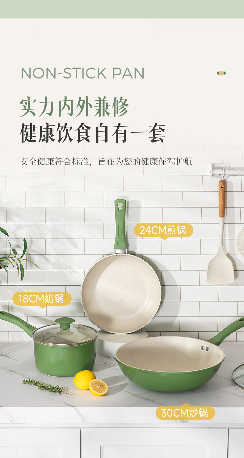 翰乐 套装锅 HL-XXS01 炒锅30CM、煎锅24CM、奶锅18CM 柔绿色(单位:套)