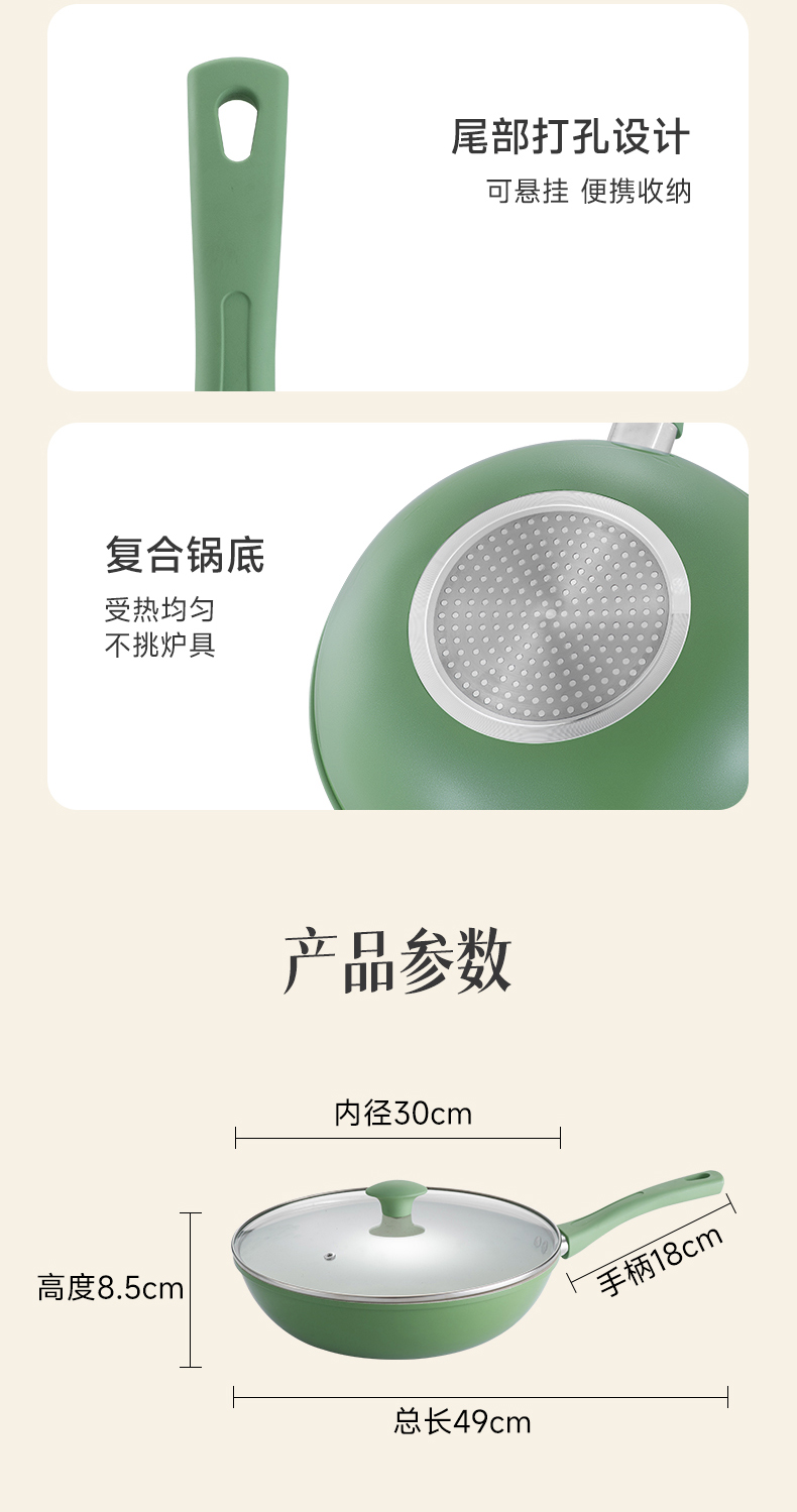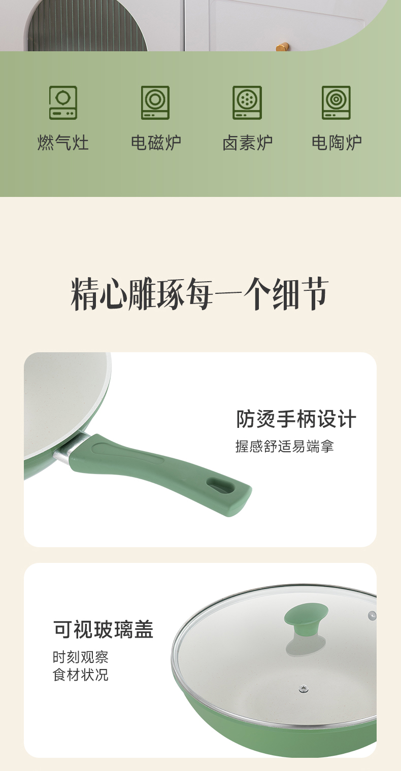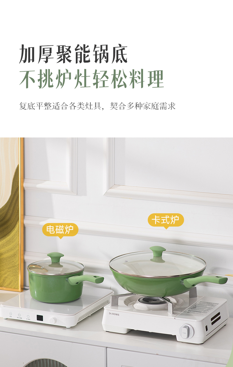 翰乐 套装锅 HL-XXS01 炒锅30CM、煎锅24CM、奶锅18CM 柔绿色(单位:套)