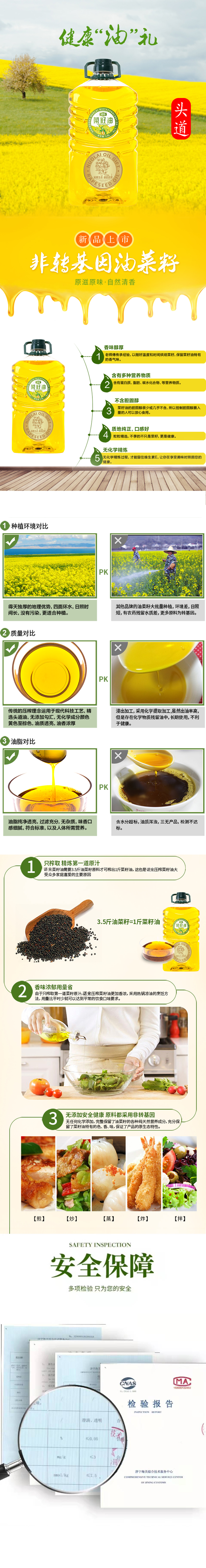 诺来 非转基因食用油压榨一级 头道菜籽油 2.8L*1桶 混色(单位:桶)