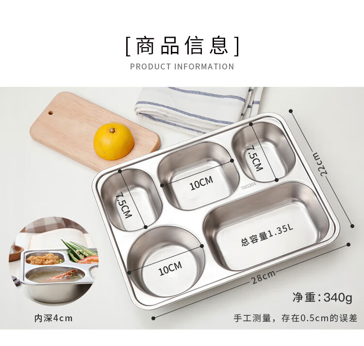 美厨(maxcook) 304不锈钢大号餐盘 MCFT725 容量约1.3L 不锈钢色(单位:个)