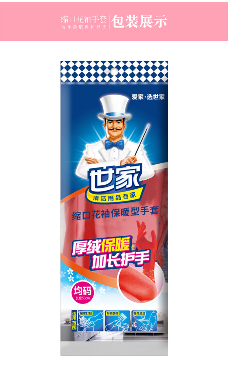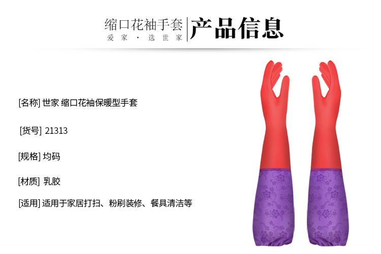 世家 缩口加长加绒保暖手套 21313 50cm(均码) 红色(单位:副)