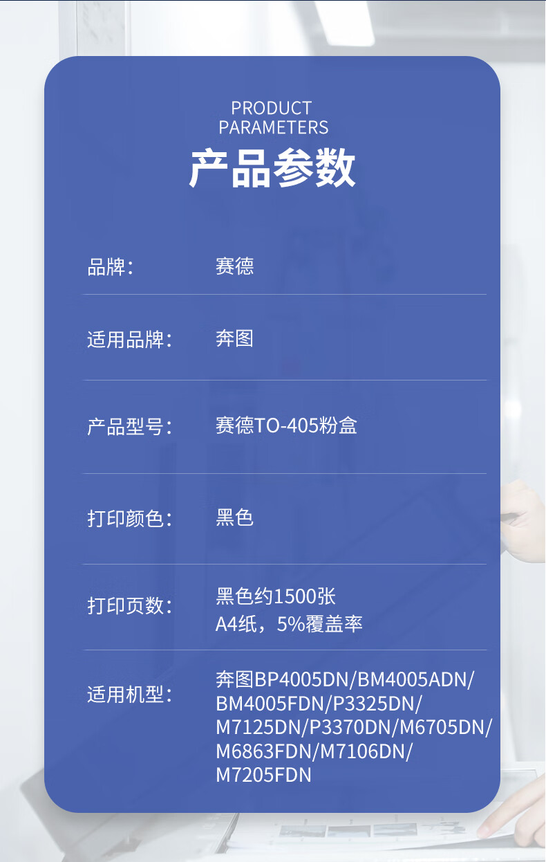 赛德 TO-405 打印量1500页 适用奔图BP4005DN/BM4005ADN/BM4005FDN/P3325DN/M7125DN/P3370DN/M6705DN 粉盒 (计价单位:只) 黑色