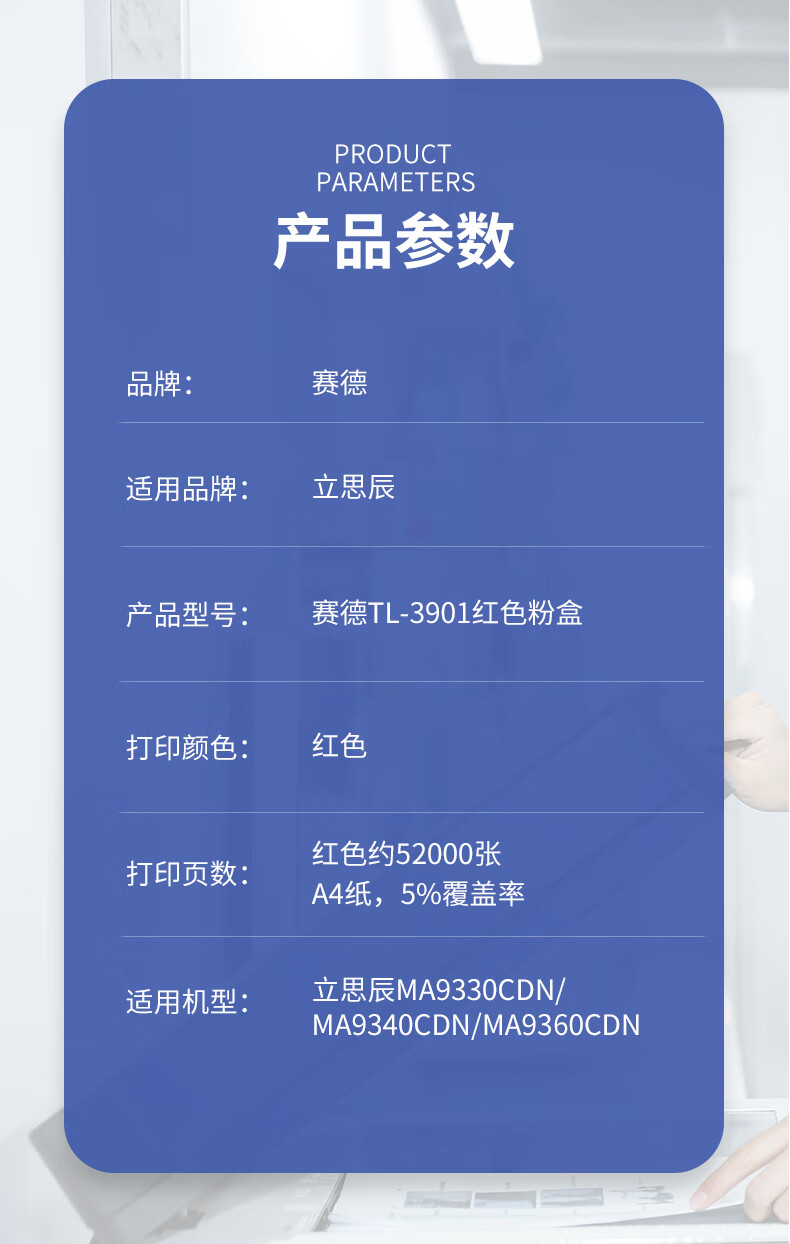 赛德 TL-3901红色 打印量52000页 适用立思辰MA9330CDN/MA9340CDN/MA9360CDN 粉盒 (计价单位:只) 红色
