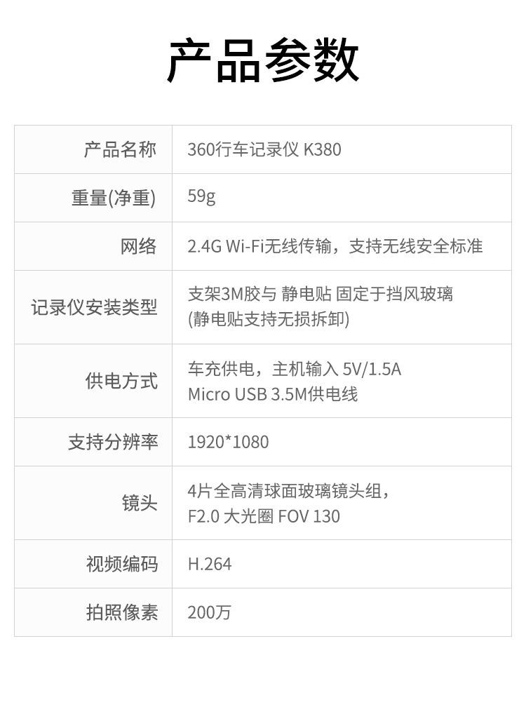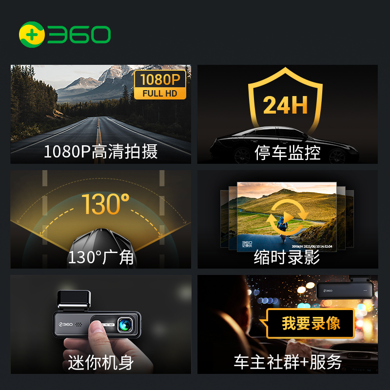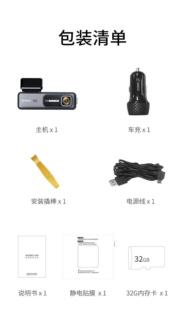 360 行车记录仪K380J 1080p高清拍摄 微光夜视 高清录影 智能语音(个)含128G存储卡 黑色