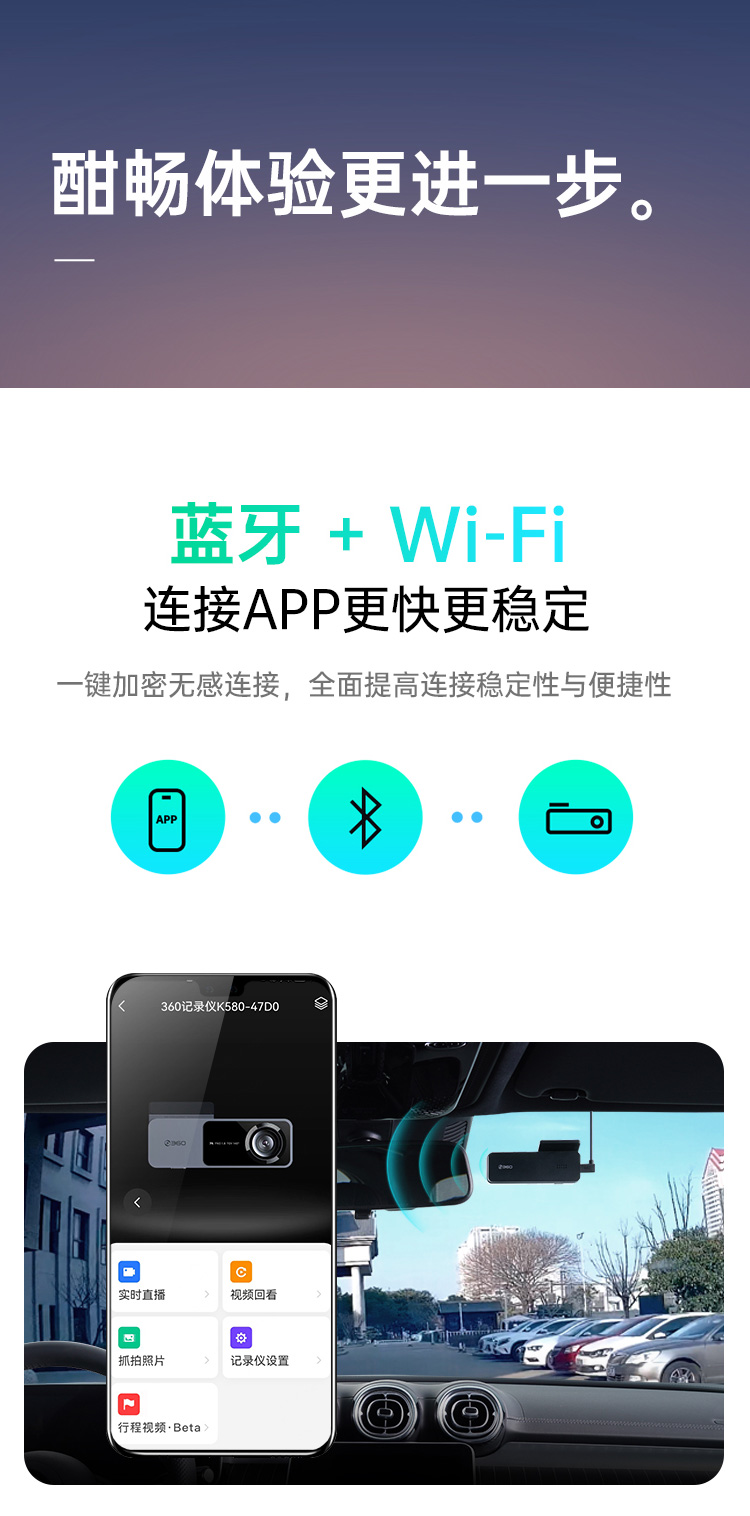 360行车记录仪K580高清夜视1620P无线WiFi蓝牙停车监控2023新款 黑色
