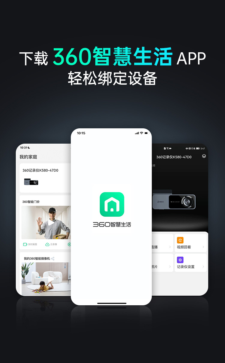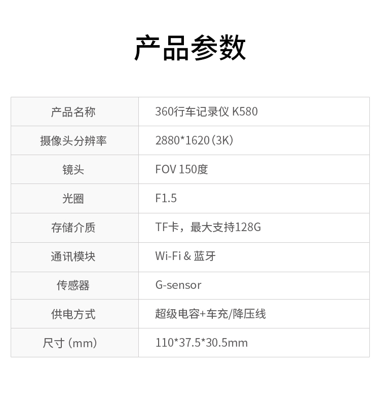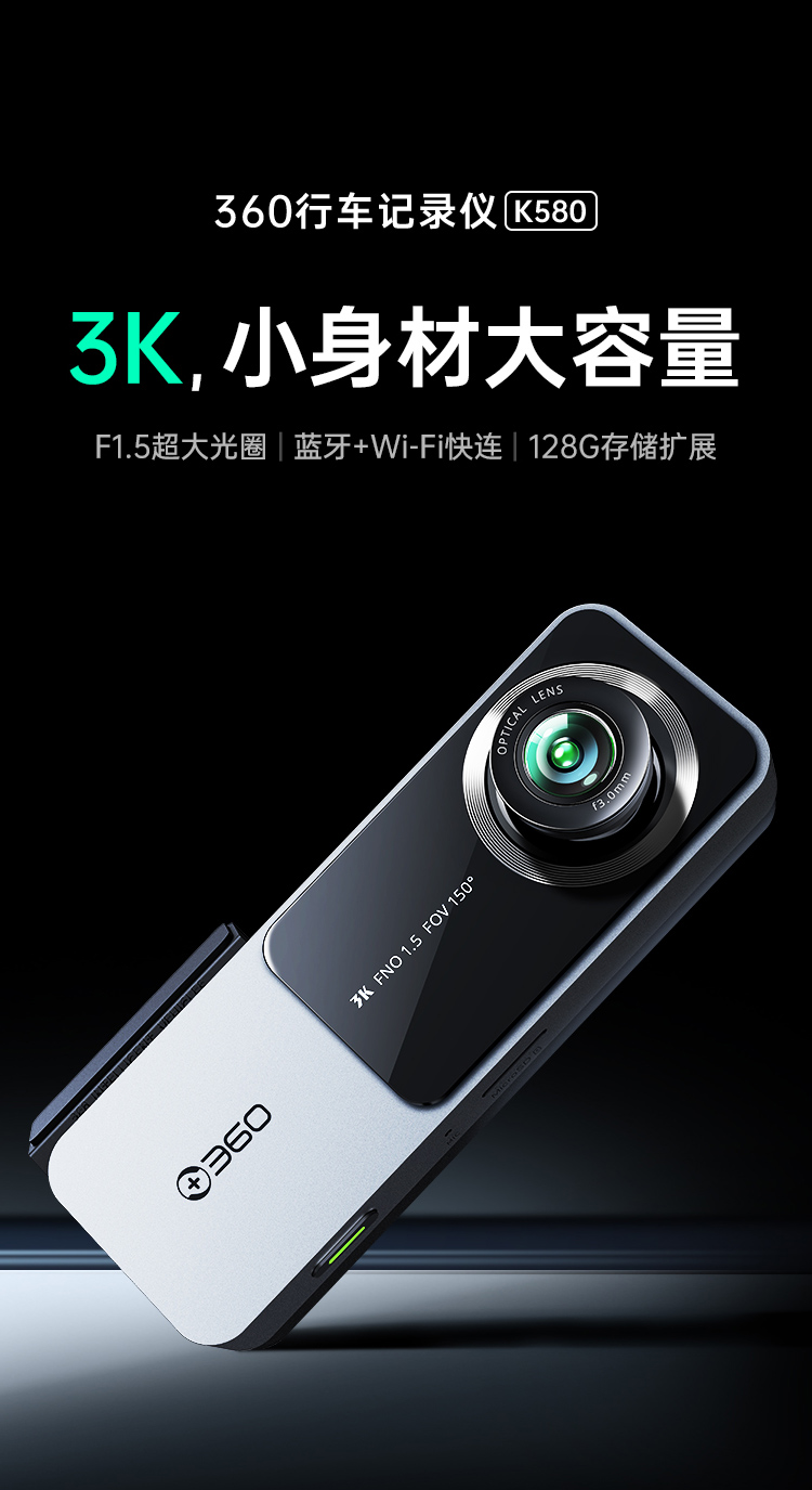 360行车记录仪K580高清夜视1620P无线WiFi蓝牙停车监控2023新款 黑色