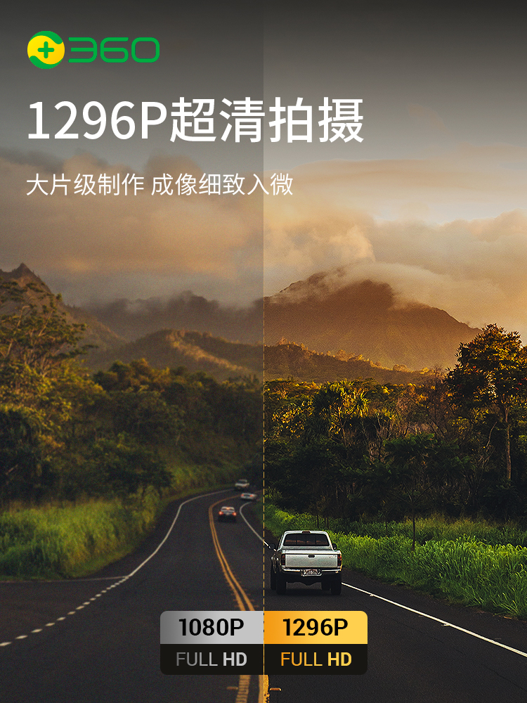 360行车记录仪G300pro 1296p高清微光夜视WiFi无线电子狗停车监控 黑色