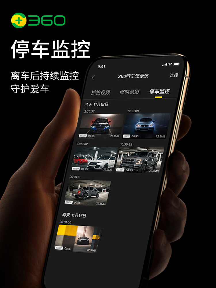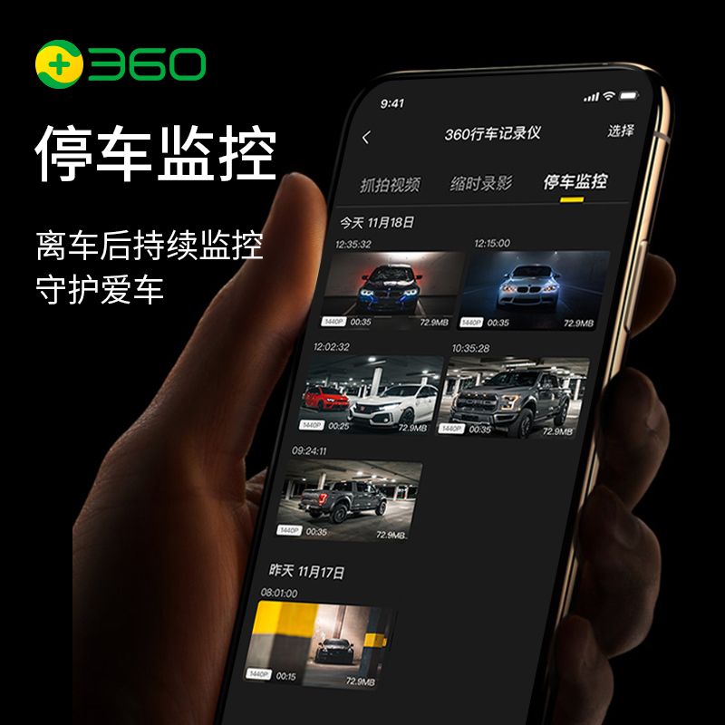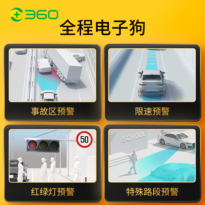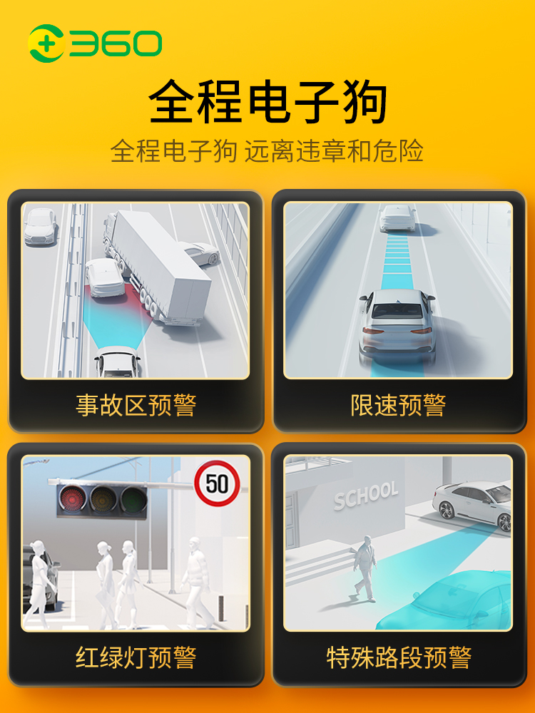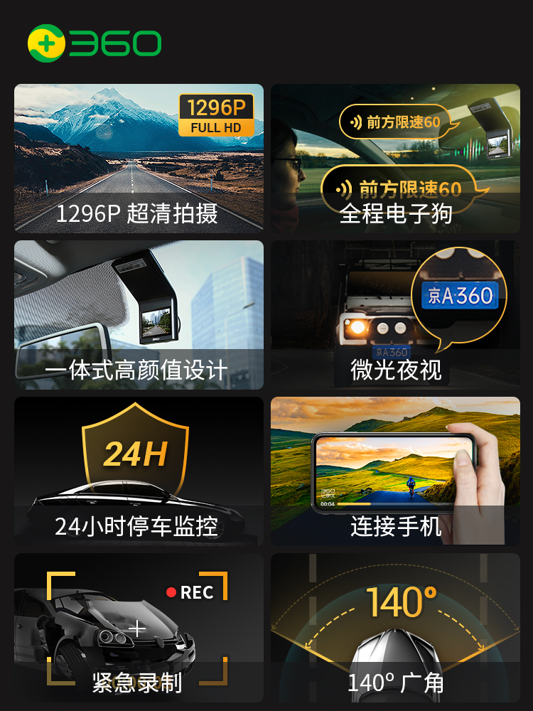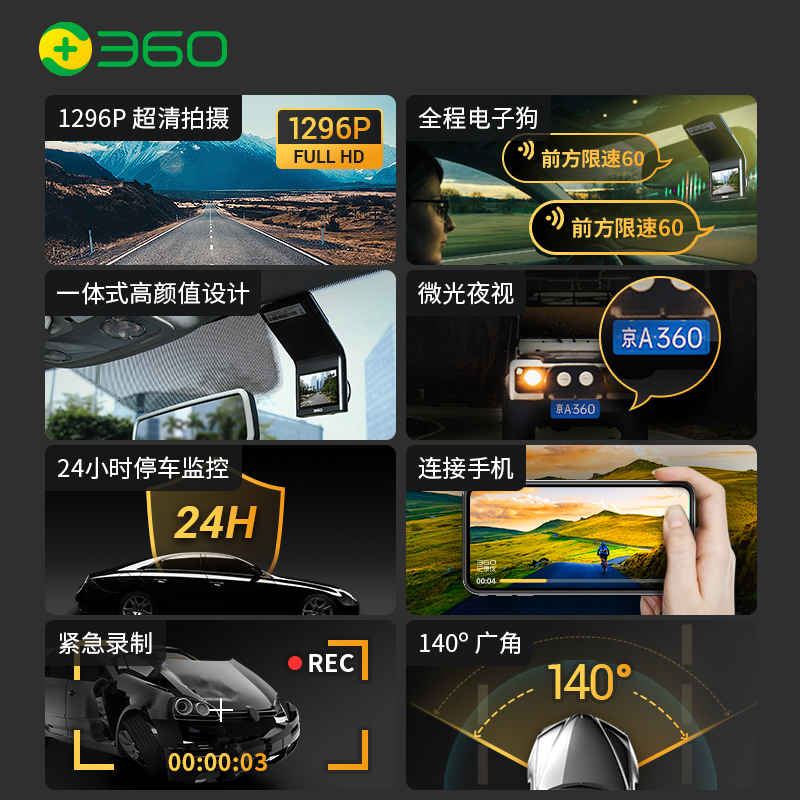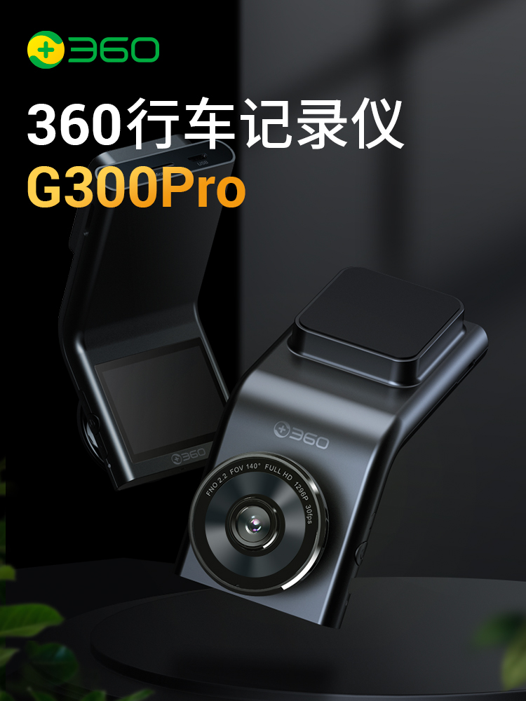 360行车记录仪G300pro 1296p高清微光夜视WiFi无线电子狗停车监控 黑色