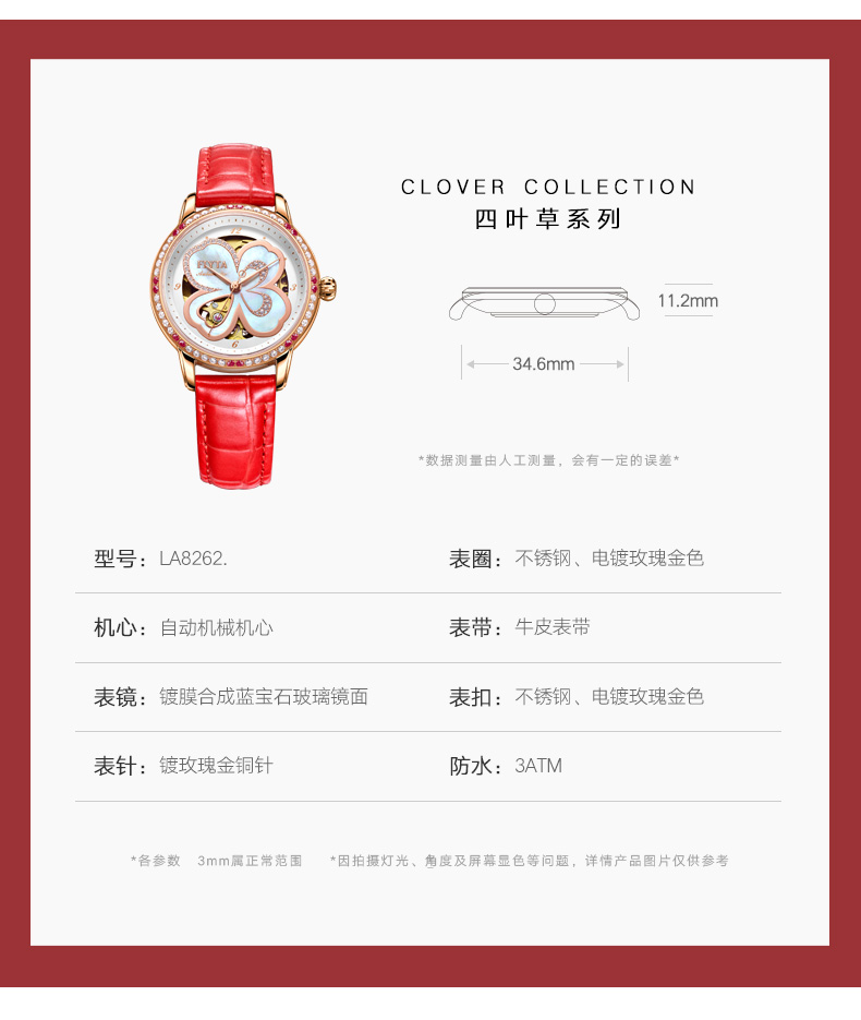 飞亚达(FIYTA)手表女四叶草机械表LA8262.GWSS.A(单位:只) 红色
